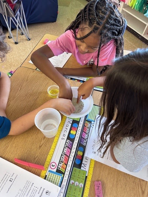 In Mrs. Gaskin's 3rd grade class, kids worked on making a hypothesis to find out what happens when germs and dish soap are combined. |