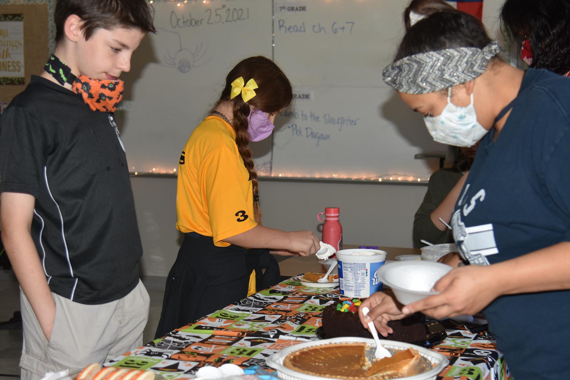 The Jr High had a wonderful little Halloween-themed gathering on Wednesday where they listened to some spooky music while they ate cake, pumpkin pie, and cookies. They talked amongst themselves and overall seemed to appreciate their time together.