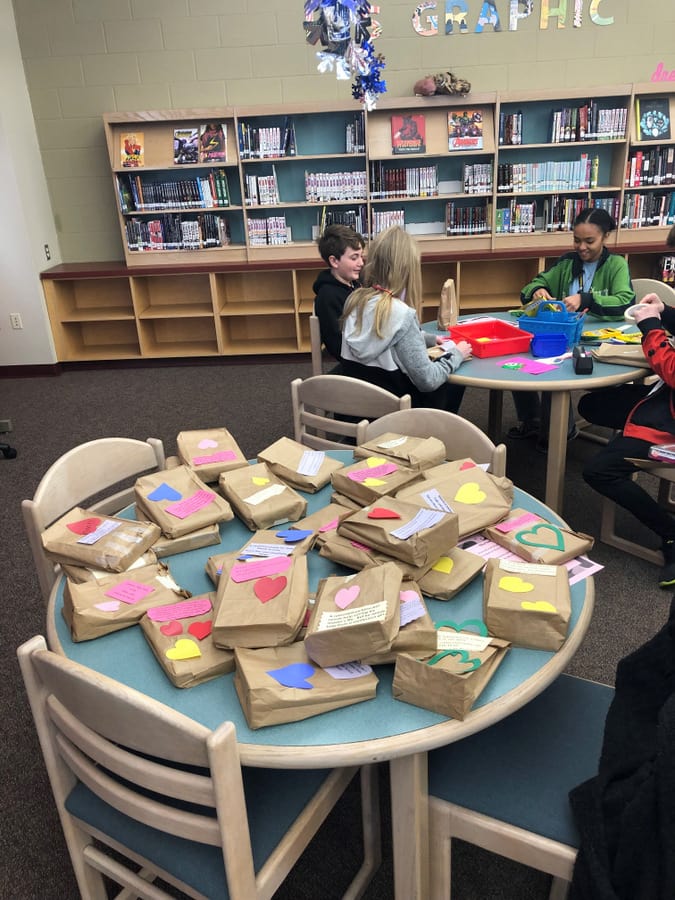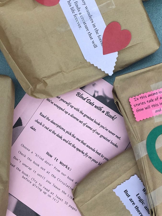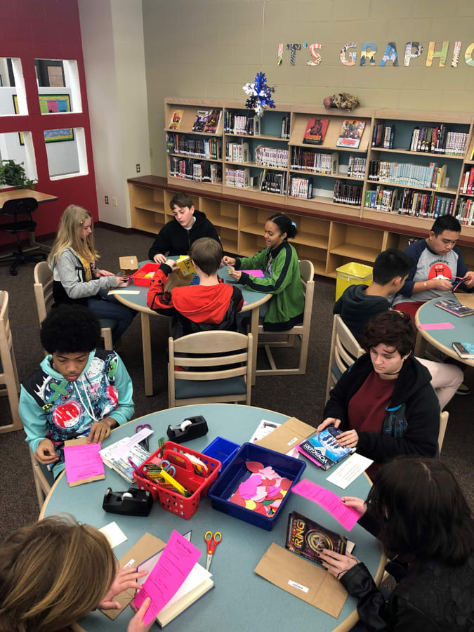 Library Ambassadors from Stacey Jr. / Sr. High helped Ms. Larkin prepare for Blind Date with a Book