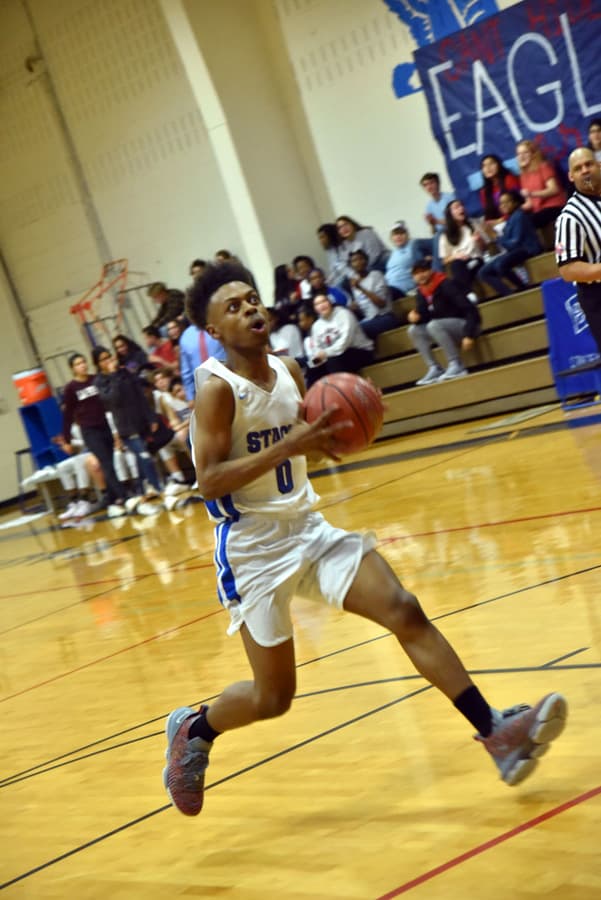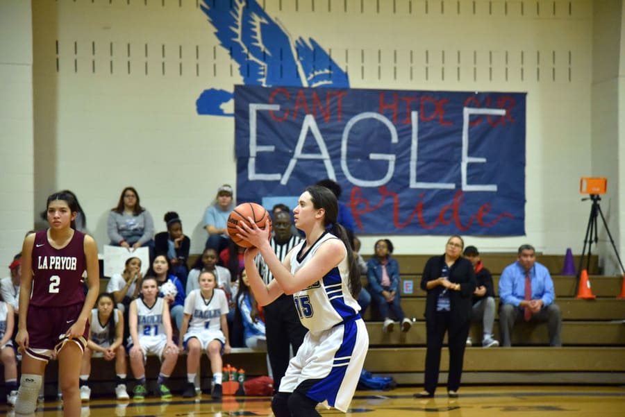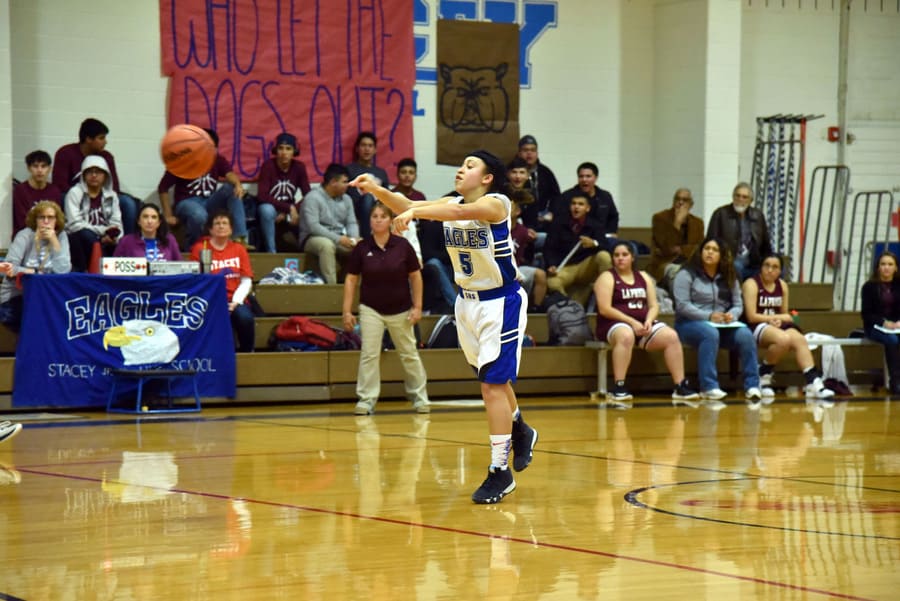 Our Stacey Basketball season is in full swing and the varsity teams are pushing to secure their spots in the playoffs. This year’s homecoming games were played against the La Pryor Bulldogs. The games kicked off with the JV boys team putting their heart into every shot, but in the end the Bulldogs took the win. Homecoming night then moved on to a very close and passion filled match between the Varsity girls teams. Ending in a final score of 44-40 with the Bulldogs on the winning side. Each quarter was fought with pride and every point was made with a purpose. The Lady Eagles really gave them a run for their money. At this point the Bulldogs were feeling pretty good with two wins under their belt but the Stacey Varsity boys team took the court by storm ending the night with a score of 59-47 taking the win from the Bulldogs! Senior, Dejon Johnson, led the team with 18 rebounds, 15 points, and 4 assists! Junior, Gabe Hilman, performed spectacularly with a total of 24 points, 12 rebounds, and 4 assists. The night as a whole was filled with overwhelming amounts of school spirit. With each point scored for all three teams the Eagles crowd blew up in an uproar of cheer. The homecoming games for the 2019 school year are definitely ones for the books.