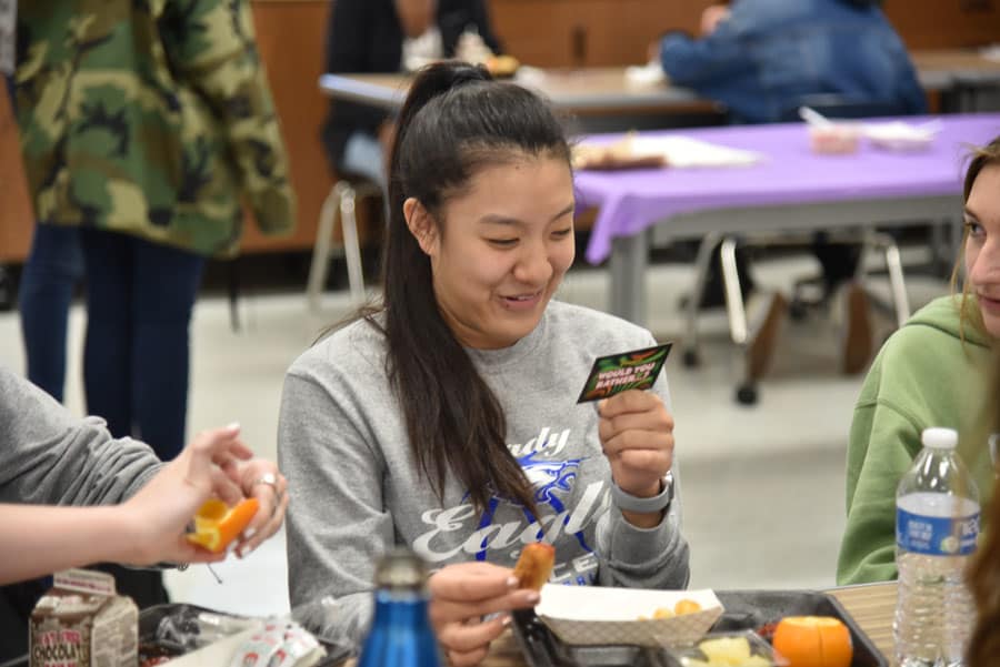 On Tuesday, January 29, S2S hosted their monthly Lunch Bunch event. They invited all of the new high school students to come eat their lunch with the s2s, as well as participate in a few activities. We had an amazing turnout at this month’s Lunch Bunch, hosting the event for over twenty new high school students! Aside from just general socializing, S2S also had many “Would You Rather” questions for these students such as, “Would you rather be able to talk with the animals or speak all foreign languages?” We all had an amazing time. To further make it an overall better experience, S2S also served cupcakes as a small treat for everyone to enjoy.