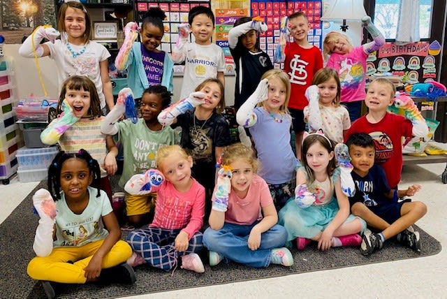 A student brought in socks and googly eyes for the class to make a sock puppet! How fun! The kids had a great time! |