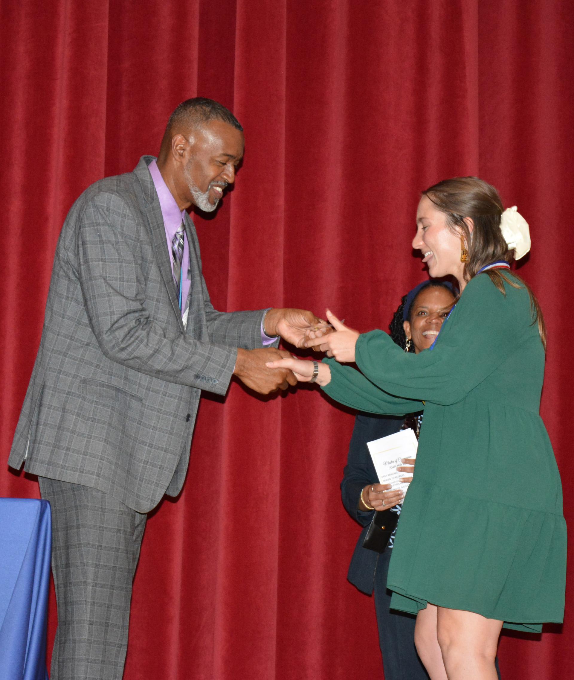 Lackland ISD honored this years retirees with a beautiful ceremony at the Lackland ISD auditorium. The 2022 - 2023 retirees are Mary Friday, Patricia Horne, Rosa Linda Santoya - Lane, Jania Nicholson, and Michelle Thompson. Emceed by Stacey Social Studies teacher Mr. Juan Navedo, family, friends, and colleagues gathered to celebrate the accomplishments and dedication of the honorees. Retiress were presented with beautiful rocking chairs so they could really enjoy their time off relaxing. It was a wonderful ceremony concluding with the distribution of service pins to current employees. After the ceremony everyone gathered in the Cynthia Lyon Center to enjoy amazing food and cake while door prizes were handed out. Thank you to our excellent food service, custodial, and maintenence teams, as well as the superb retirement committee for making this another wonderful event!