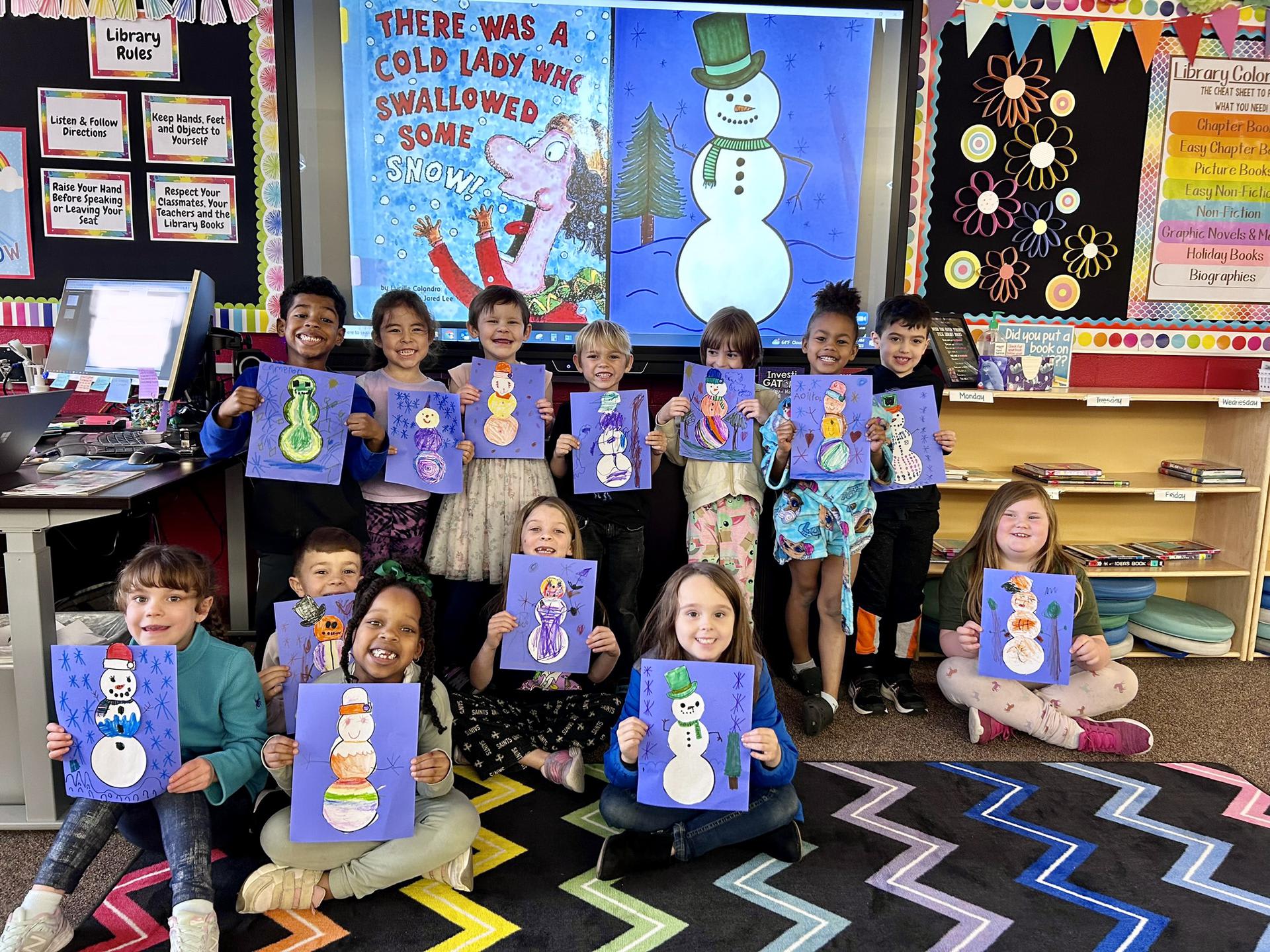 Mrs. Ruiz's class had snow much fun reading "There Was a Cold Lady Who Swallowed Some Snow" and making snowmen during library specials! |