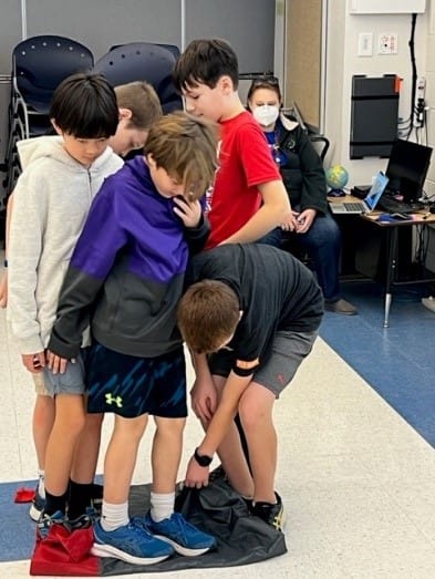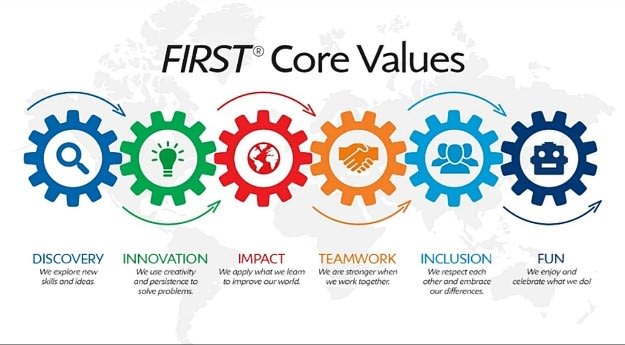 This year’s theme is “Superpowered” where teams will explore where energy comes from, and how it is distributed, stored, and used. There are three parts of the competition and students must use their core values throughout the event. The team is practicing one of the values with Robotics coach, Dana Kickler. Can you guess which core value they are practicing in the picture? |