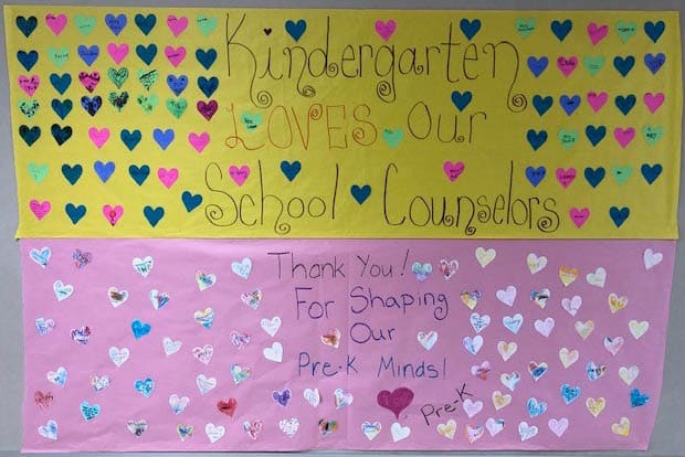 Pre-K and Kindergarten celebrating Mrs. Rodriguez and Ms. Dominguez for National Counselors Week! |