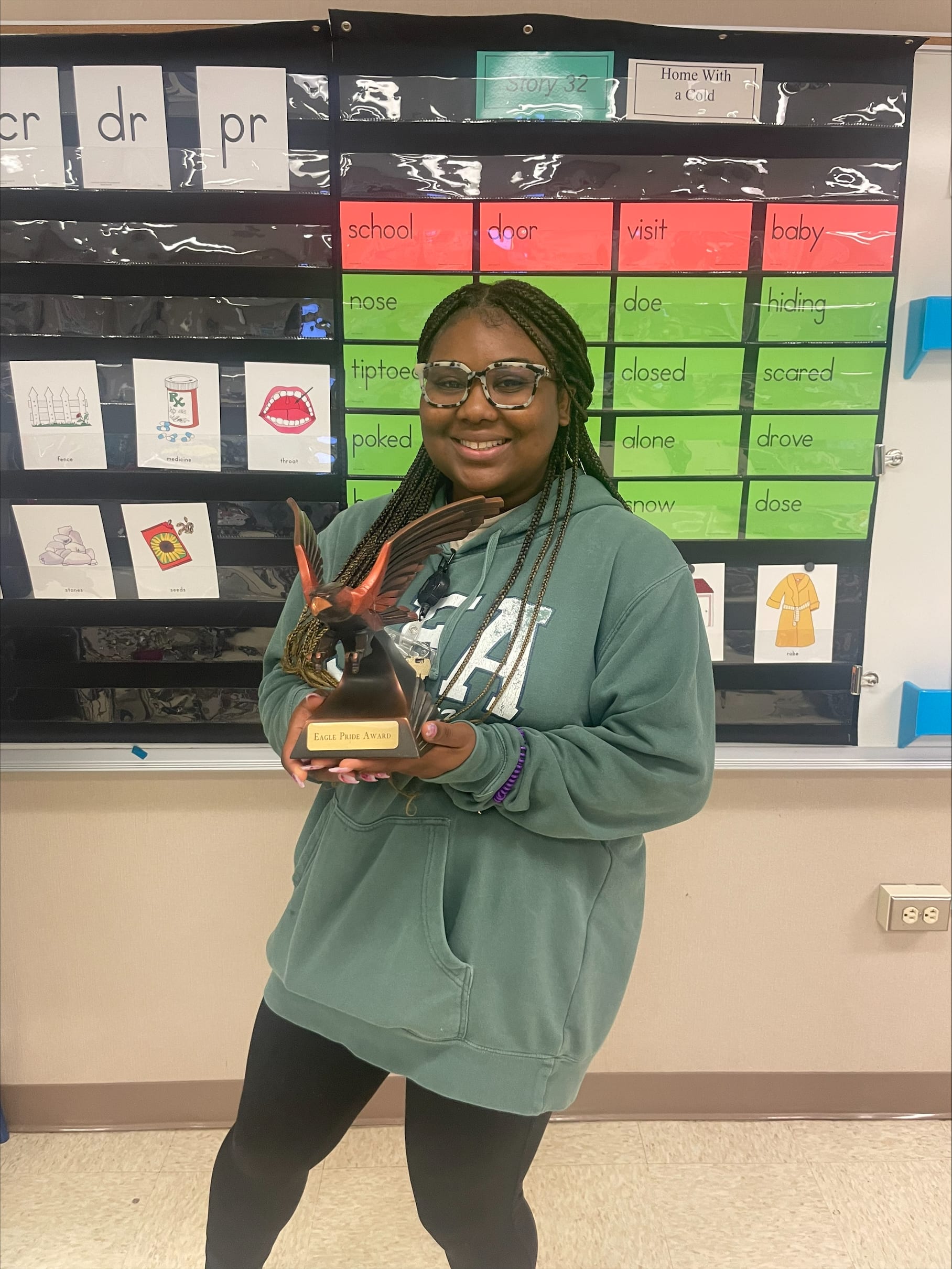 We have a new Golden Eagle WINNER: 1st grade teacher Ms. Toliver!