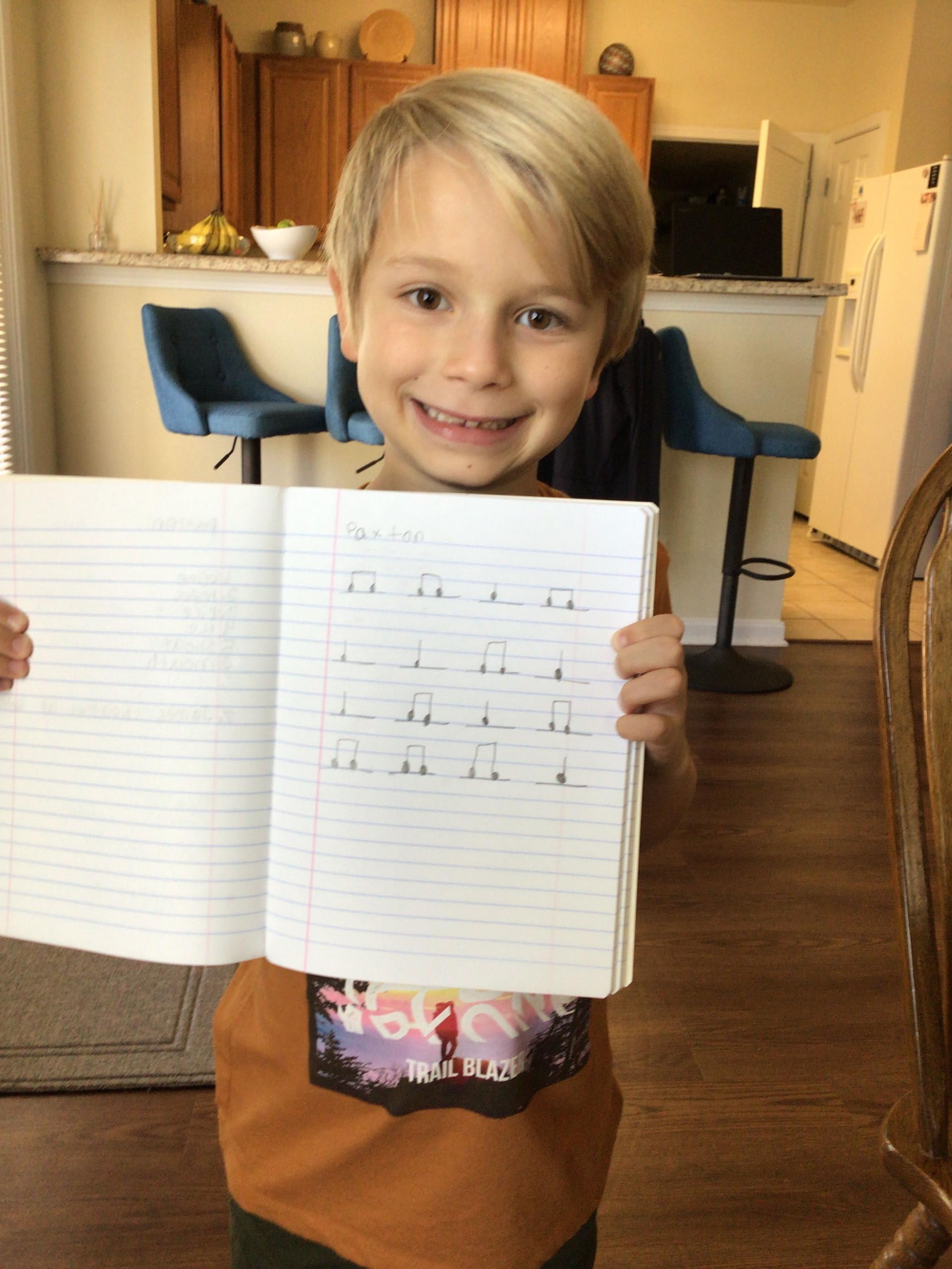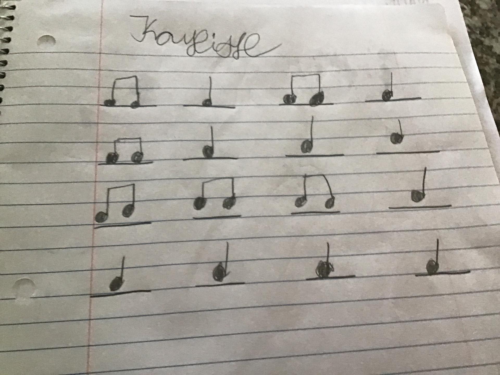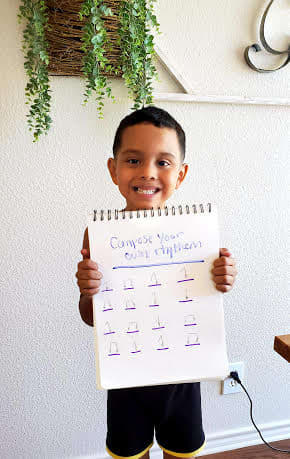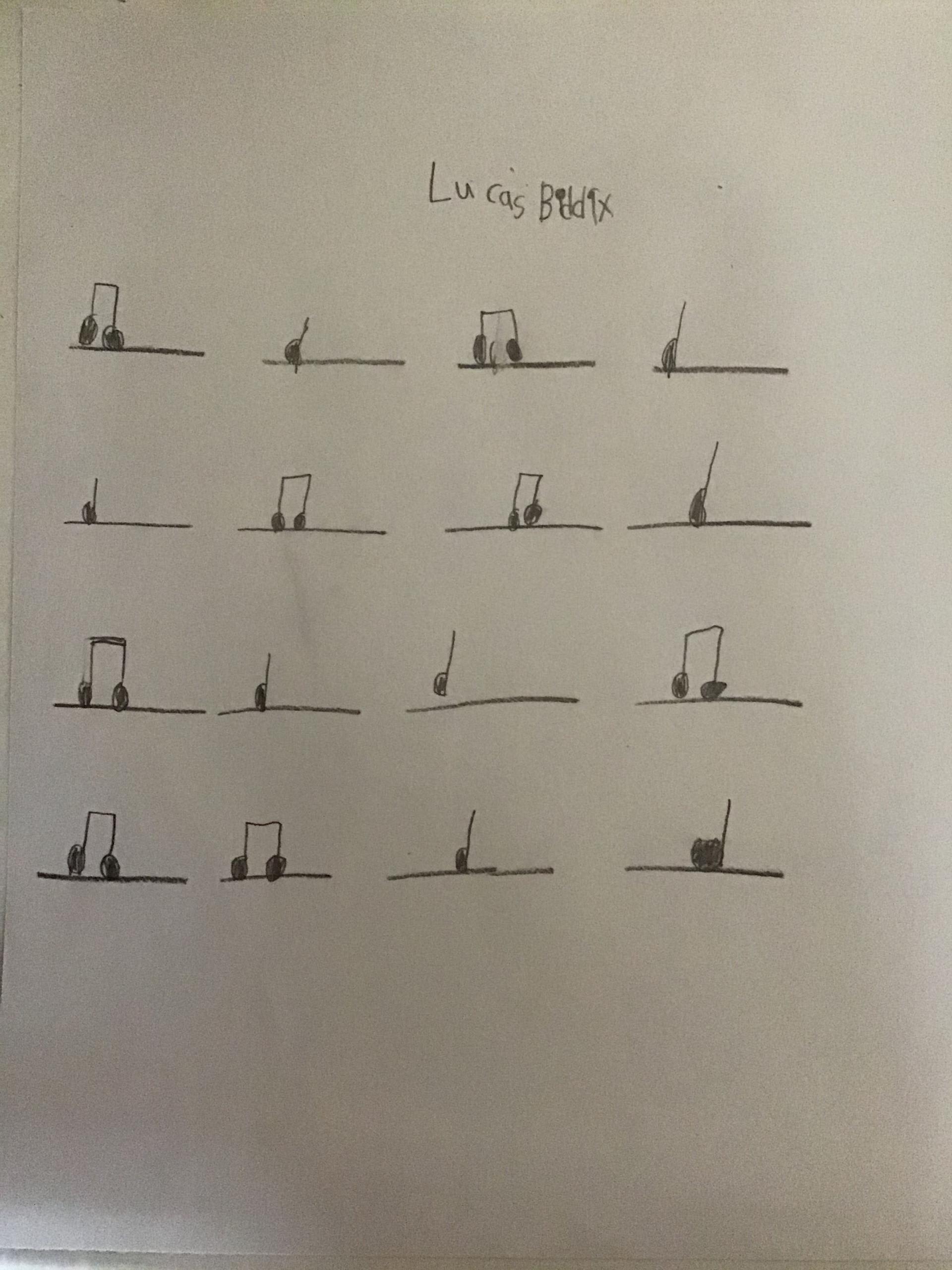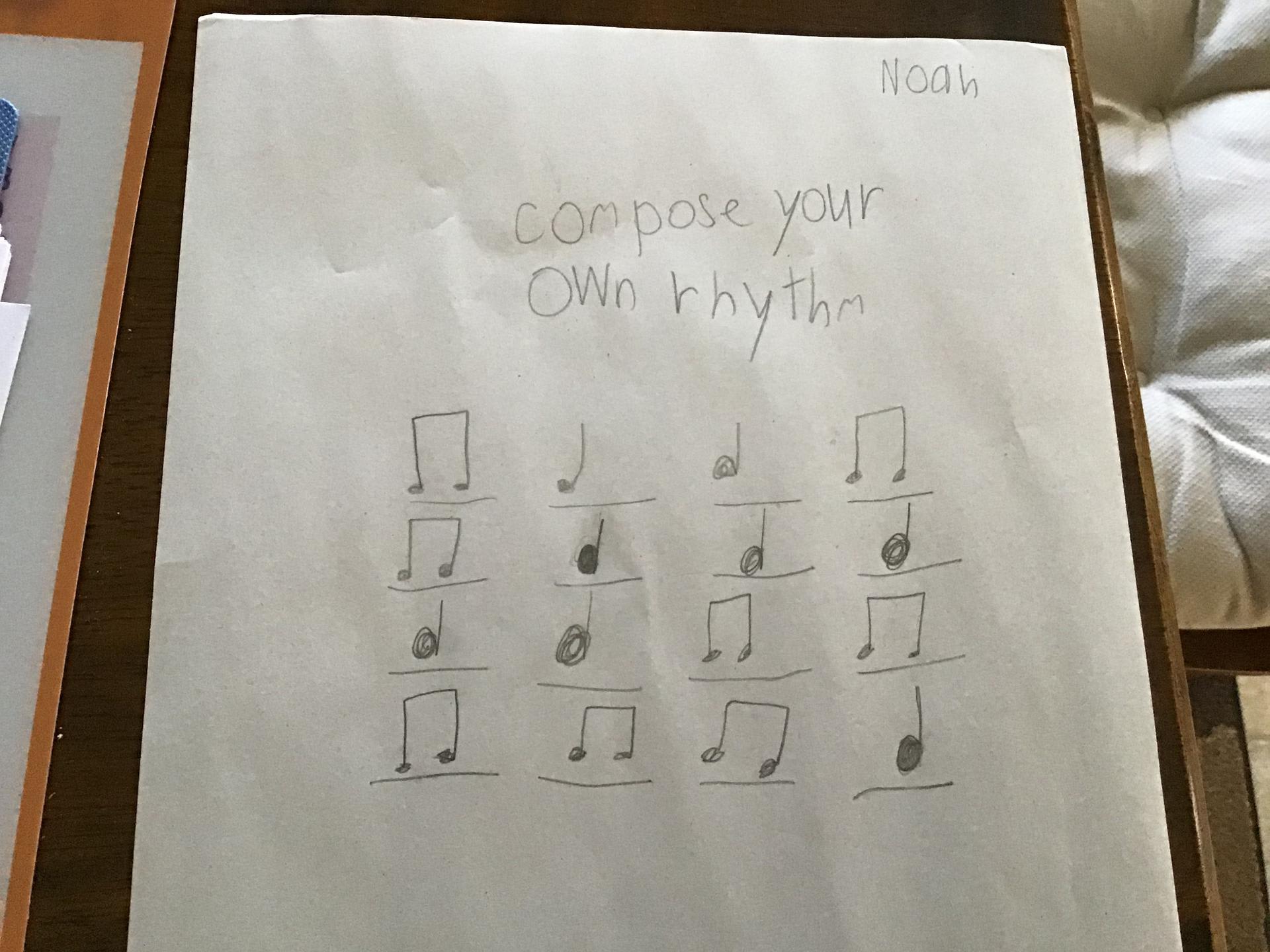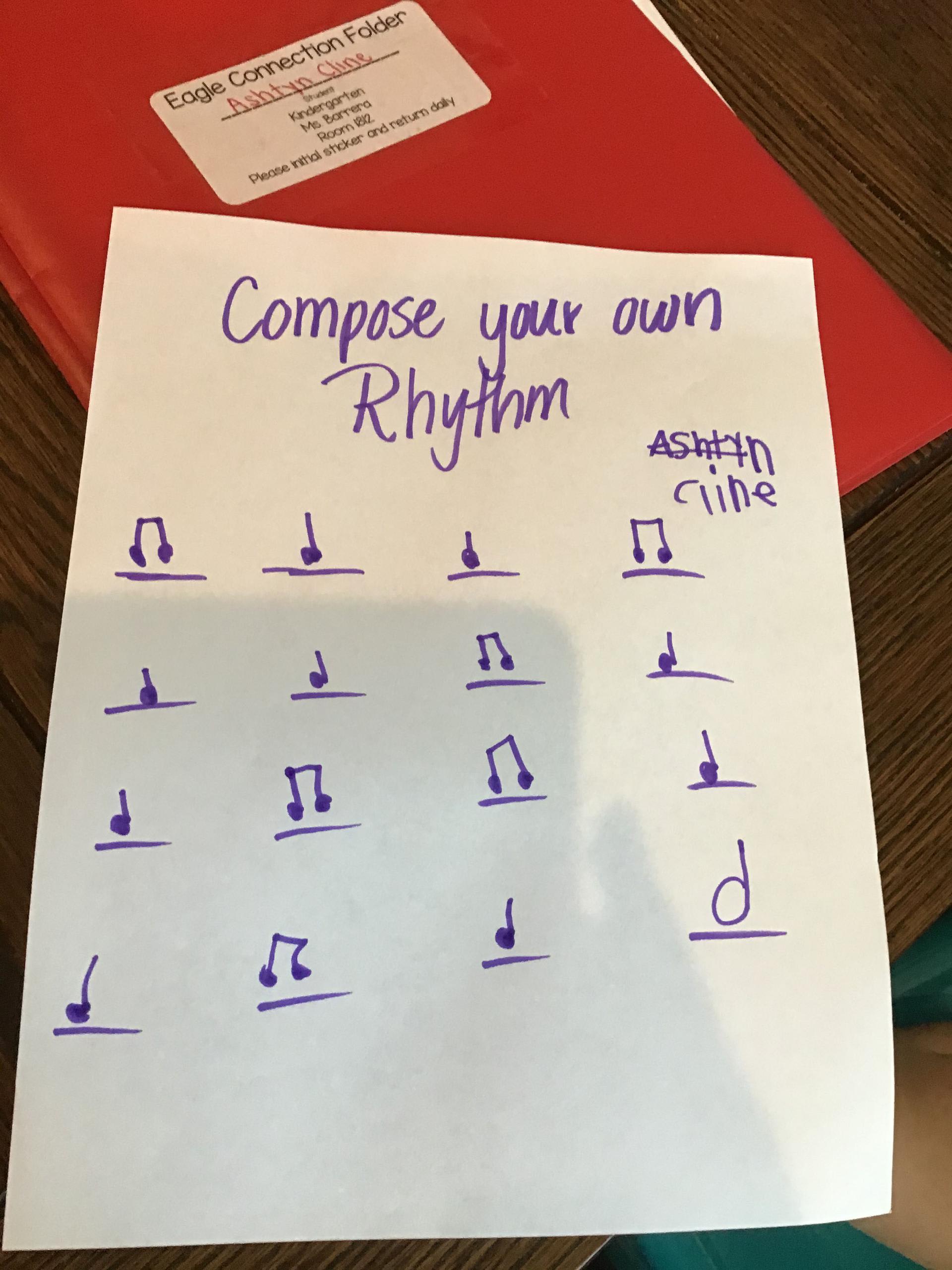This week in music, first grade students are composing their own rhythmic patterns using quarter notes and paired eighth notes.