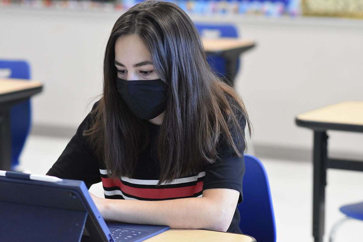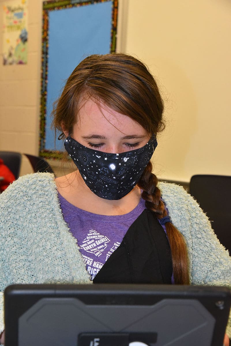 Stacey Happenings Junior High students take masks off for a brief moment to pose for solitary photo ID’s outside!