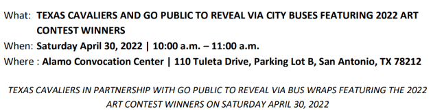 This is the third year for the Go Public High School Art Spotlight where student winners experience their pieces in a larger-than-life format on the exterior of a VIA bus. Go Public announced the high school student art winners on March 24th, 2022. The contest theme, “Inspiring Kindness, Beauty, and Joy” drew 89 entries and resulted in 18 winners. In addition to winning the VIA bus placement, each student will also receive a tote featuring their piece. During the reveal event, three students, who received the highest scores, will receive scholarship checks from Go Public: