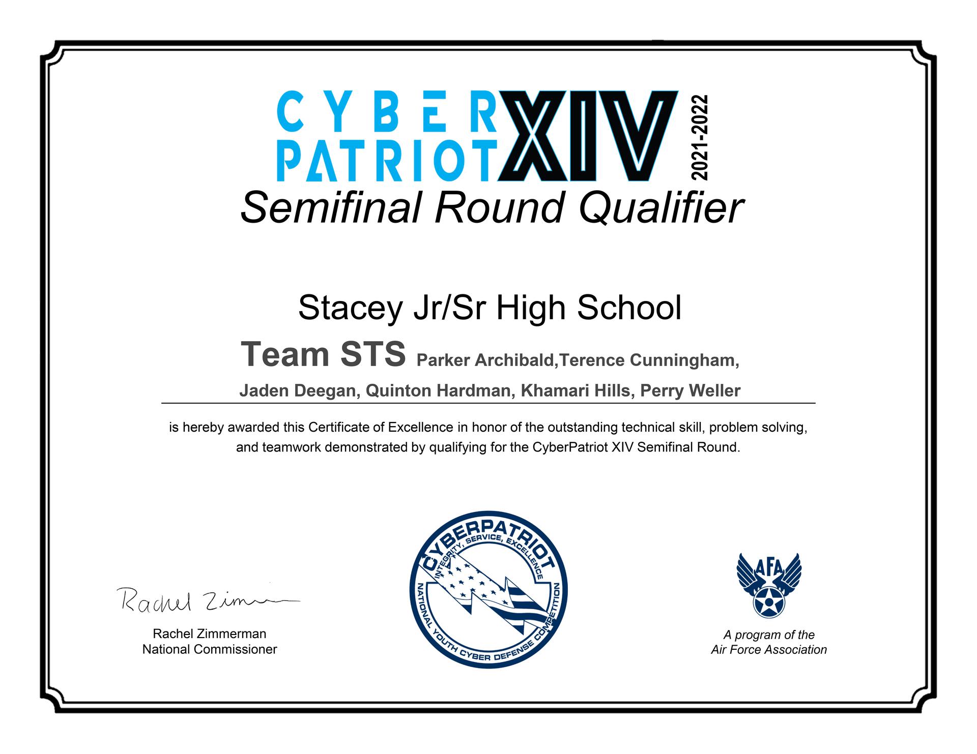 Stacey 8th grader, Grace Laumann, was one of only 20 students in the nation (and the only one from Texas) to receive the “Perseverance Award” from NASA.