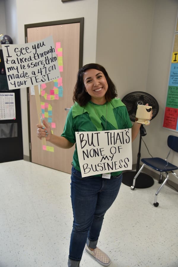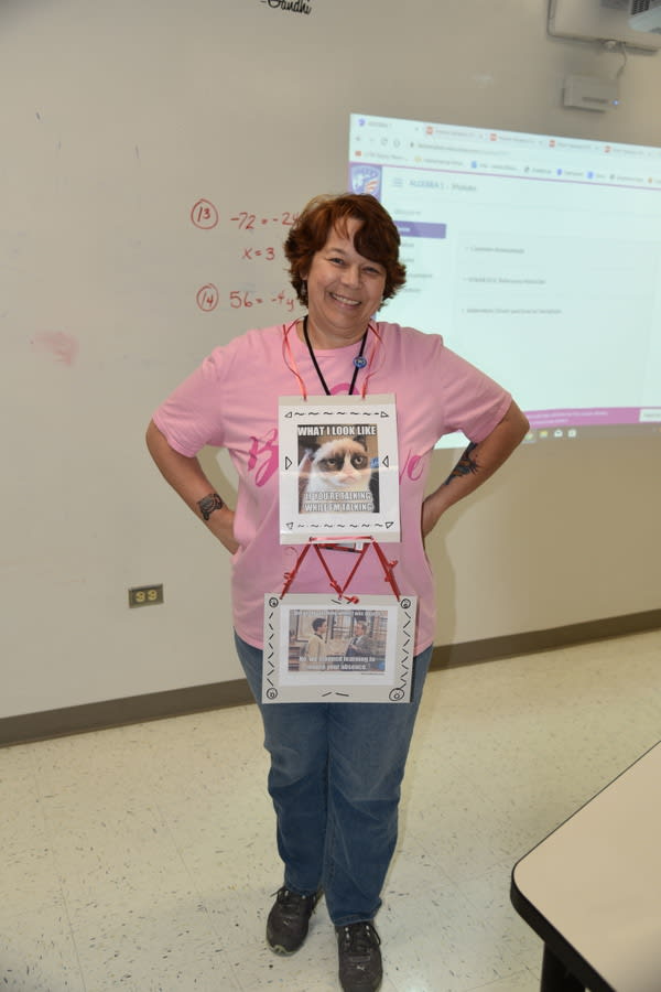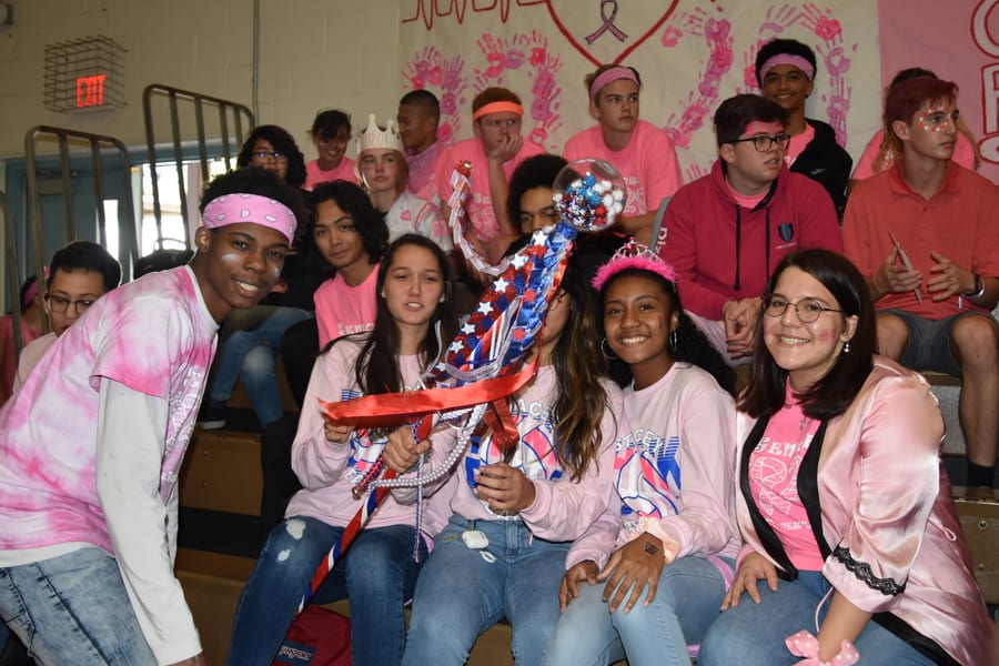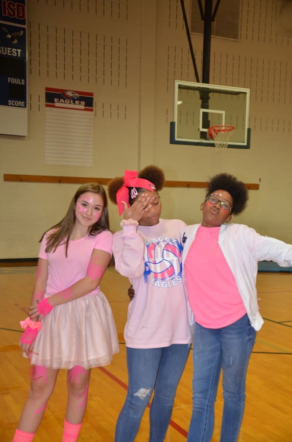 Due to this month being Breast Cancer Awareness Month, Student Council organized a fun-filled Spirit Week, October 15th through 18th, to raise awareness for cancer and support for the girls volleyball teams for their Pink-Out game. Tuesday’s theme of Disney led to students dressed as Mickey Mouse and Snow White filling the halls. Wednesday brought comfort in the form of pajama day, which was needed as 8th through 11th graders took their PSAT. This year, Thursday was given a theme that was a first for Stacey High School: Meme day; 6th through 12th graders referenced their favorite internet jokes and vines through outfits, props, and actions. To correspond with the Pink Out Pep Rally, students decorated themselves in pink through clothes, temporary hair dye, and accessories.