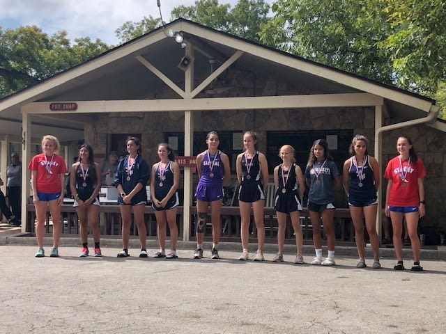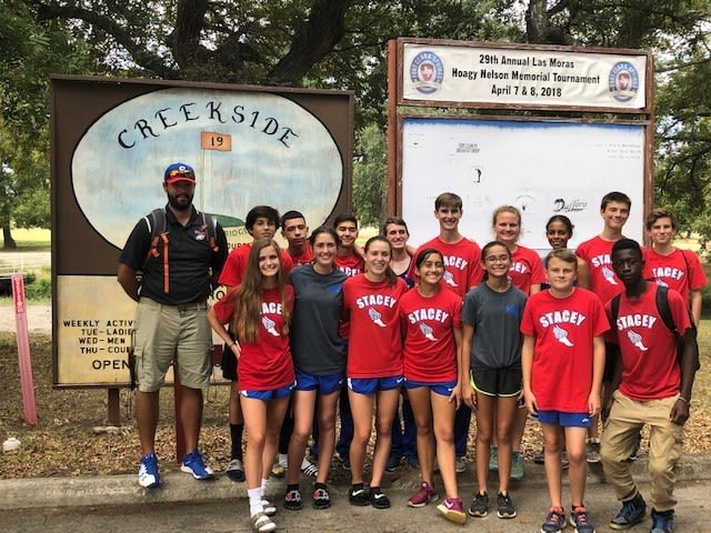 On October 14, the Stacey Jr/Sr High Cross Country team traveled to Brackettville for their District Championship Meet. Everyone who ran set a Personal Best for their times. Greg Bollinger placed 6th with a time of 16:51 and Conner O'Malley placed 9th with a time of 17:19 to lead the Varsity Boys' team. Both of them advance to the Regional Cross Country Meet in Corpus Christi. Josey Whitaker placed 1st with a time of 11:55 and Kelsey Traxler placed 10th with a time of 14:31 to help lead the Lady Eagles to a 3rd place finish. The two of them along with Alyssa Berg, Hannah McFerrin, Allison Flores and Bella Evans advance to the Regional Meet as well. Enrique Torres placed 2nd for the Junior Varsity with a time of 11:36. For the Junior High Boys', Zachary Born placed 1st with a time of 12:20, Aidan Long placed 2nd with a time of 12:23 and Phoenix Leifer placed 5th with a time of 13:31. Congratulations to all the runners that competed. Good luck to Conner O’Malley, Greg Bollinger, Bella Evans, Kelsey Traxler, Hannah McFerrin, Alyssa Berg, Allison Flores, and Josey Whitaker as they compete in the Regional Meet at Texas A&M Corpus Christi on Monday, October 28.