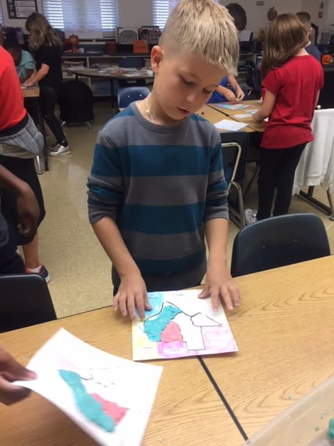 While we learned about solutions, we made some salt dough to complete our research on the Texas regions and bordering states.