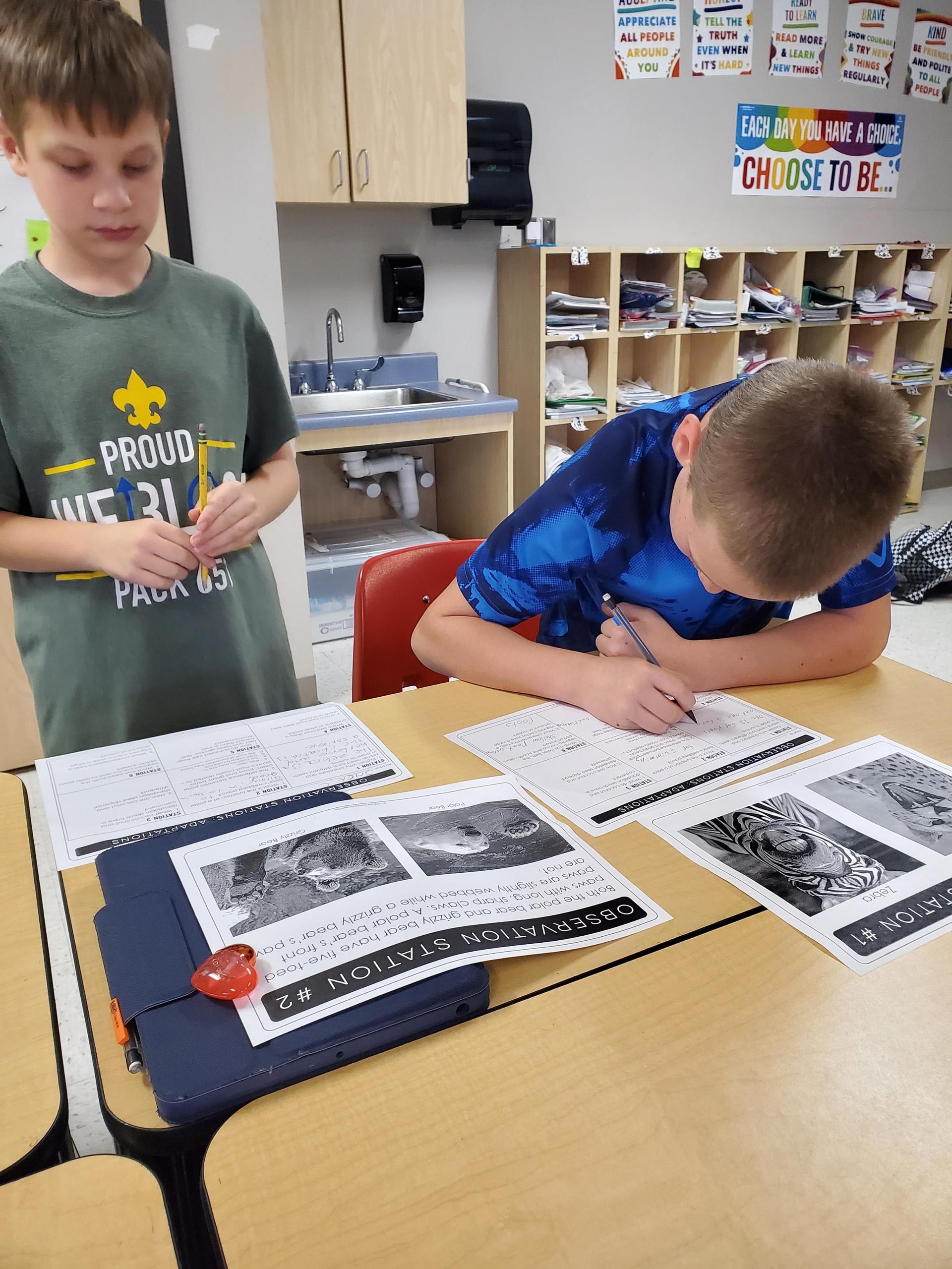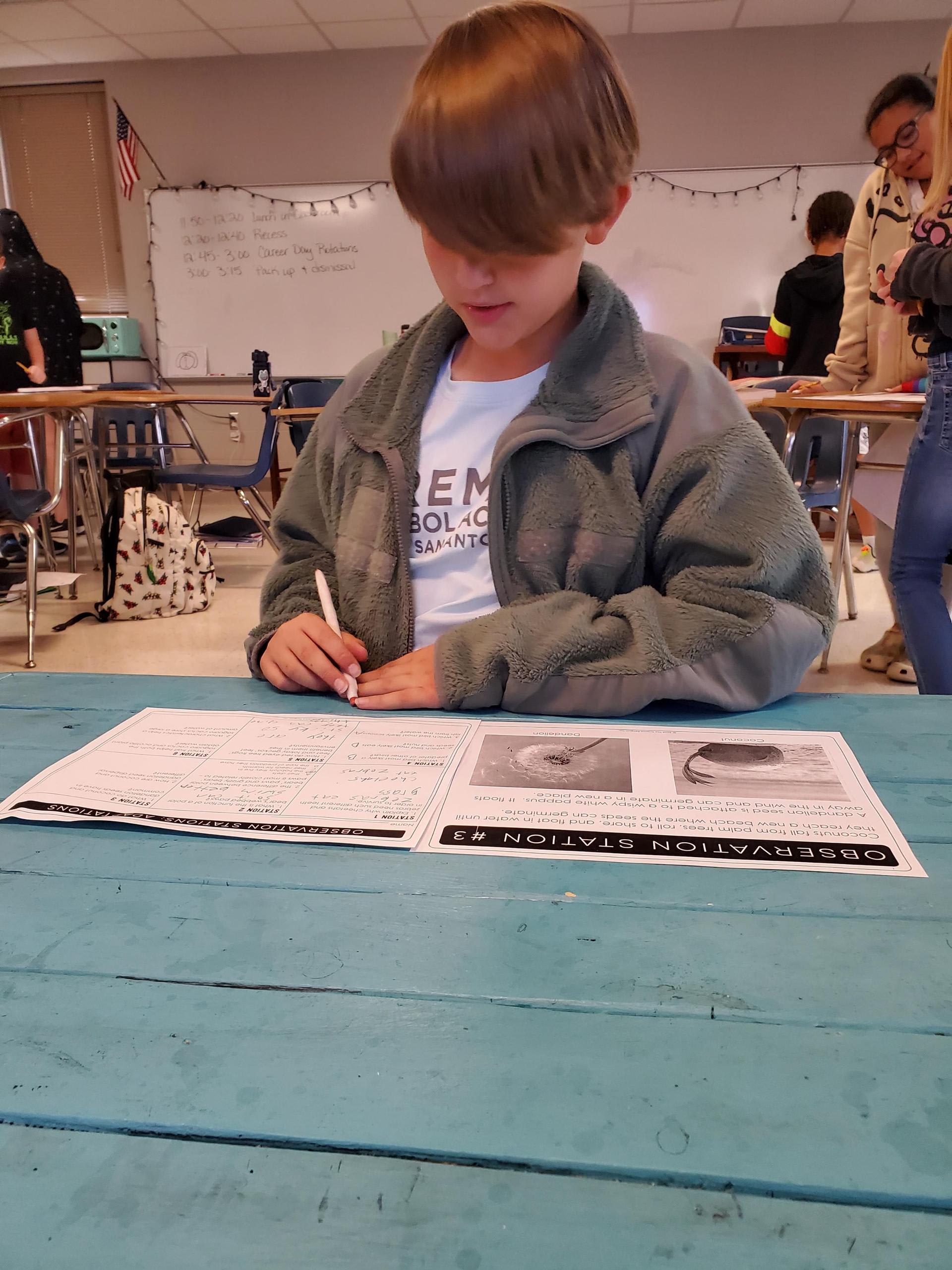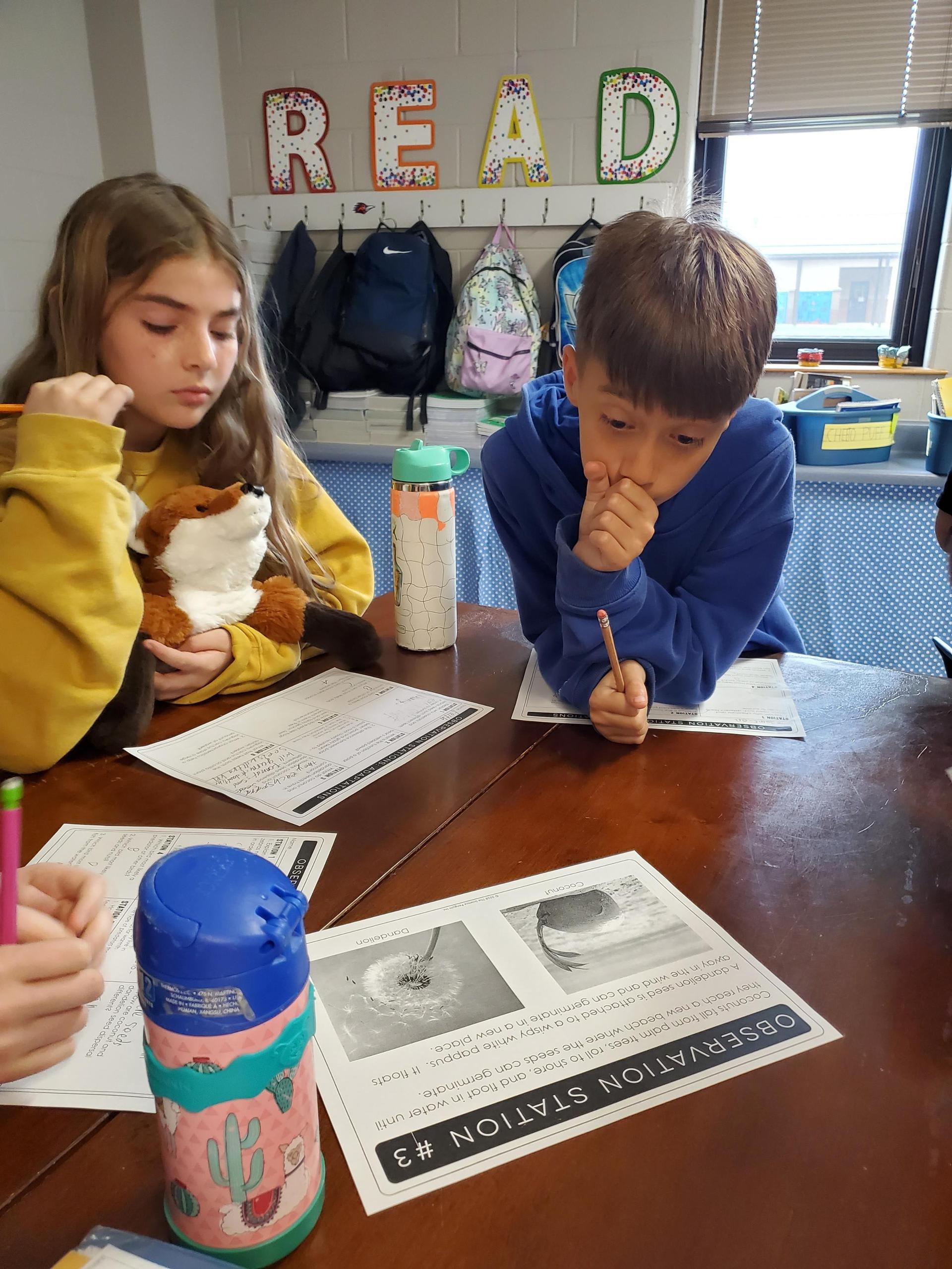 Mrs. Martino's science class working through Adaptations Observation Stations. |