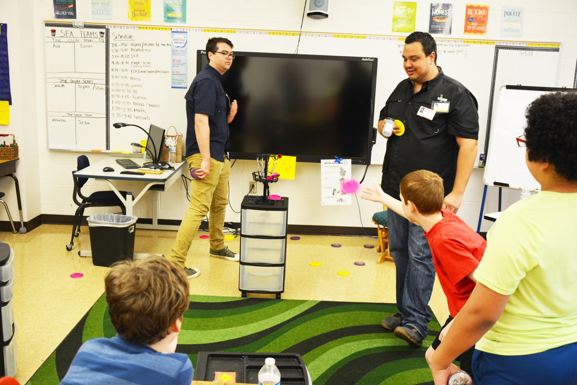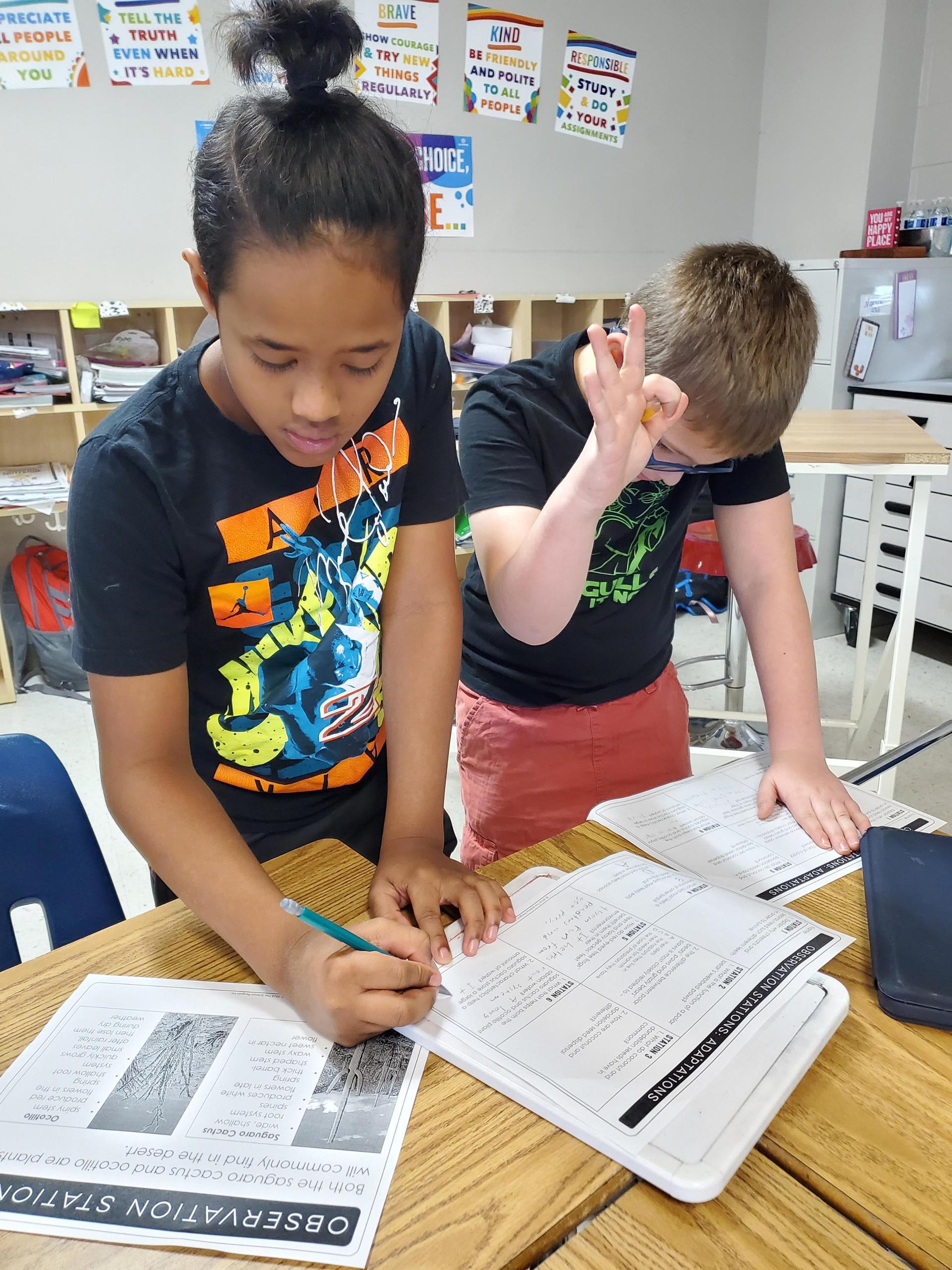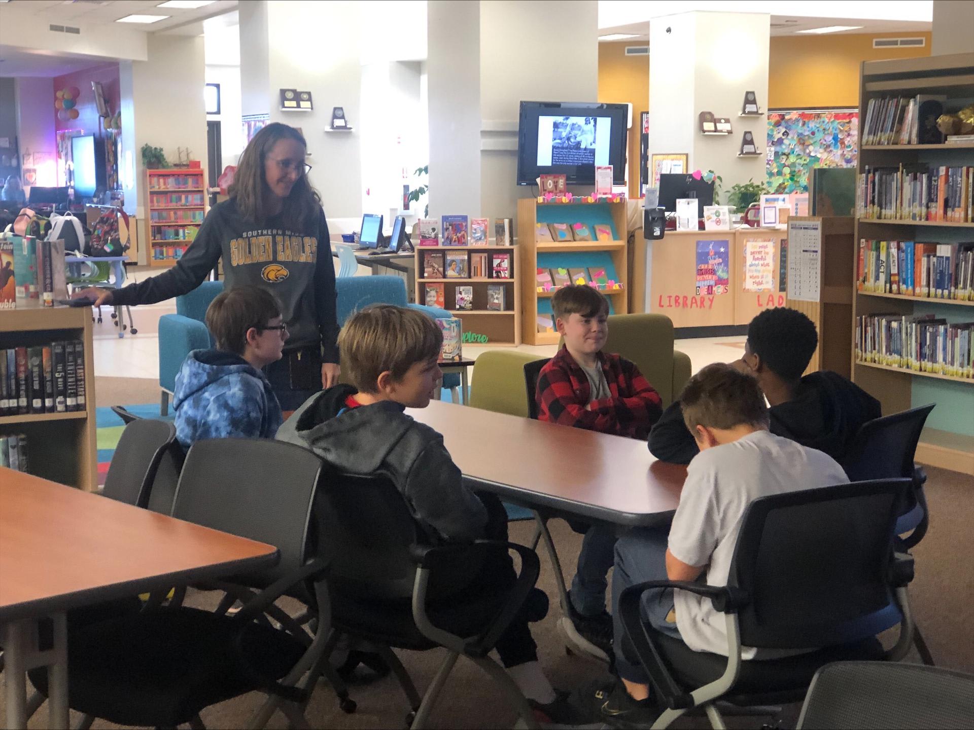 Mrs. Martino's science class working through Adaptations Observation Stations. |