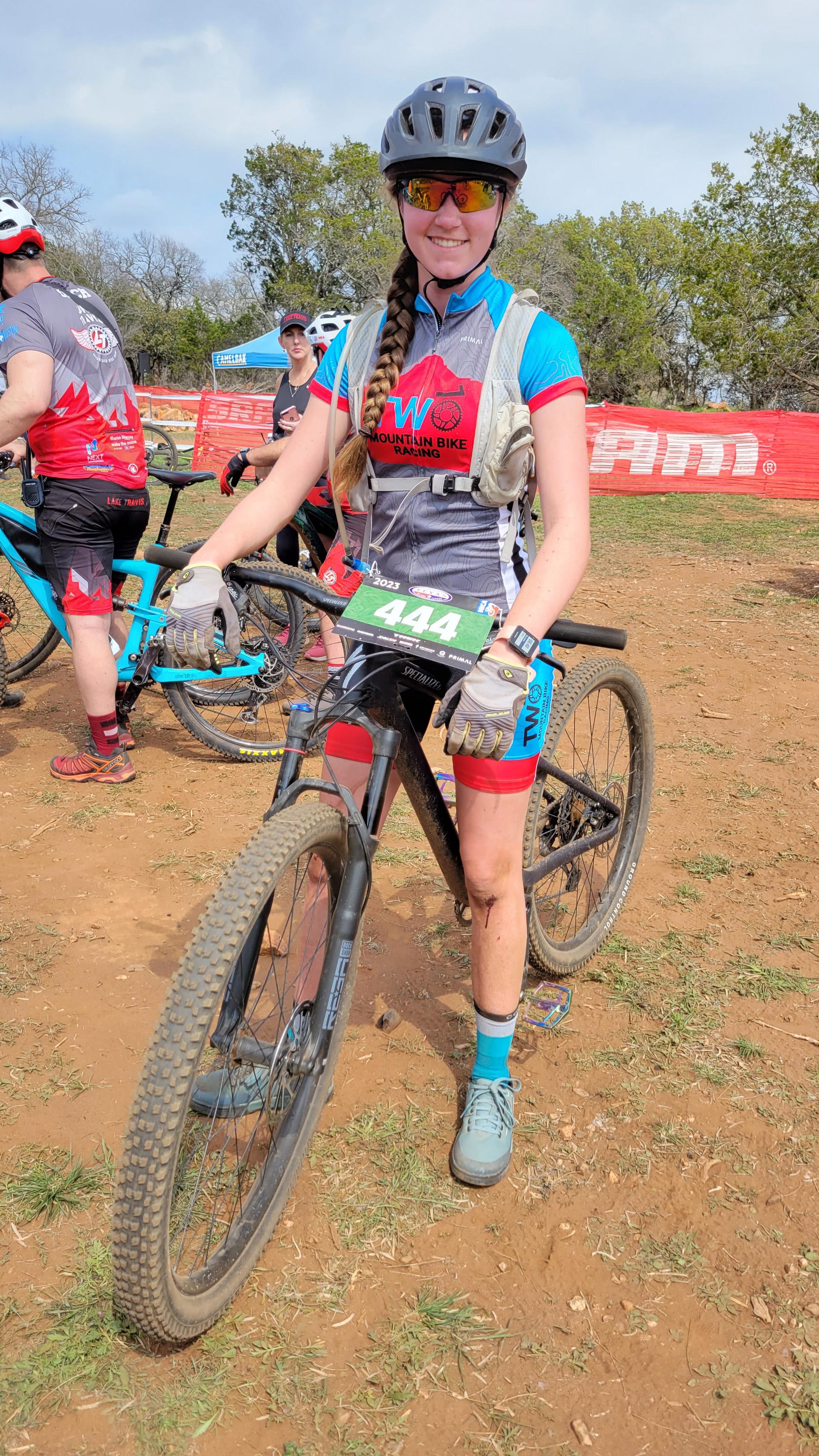 Do you have any other hobbies? I run cross country, track, and I’m also in band. Where do you travel for races? All over Texas. Next year we will travel closer to home, but my competitions can be between 2 and 7 hours away. Have you ever crashed your bike during a race? If so, how bad?