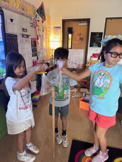 Students made predictions about if the heavier bag of pebbles would fall faster, slower, or at the same time as the lighter bag of pebbles. Gravity lab |