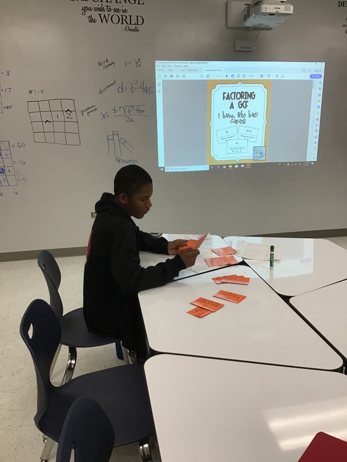 Feb. 4 – 8 is National School Counseling Week. Lackland ISD, Stacey Jr/Sr High School, and Lackland Elementary salute our wonderful counselors! Jania Nicholson is the jr. high counselor and Genevieve Medellin-Keller (Mrs. MK) is the counselor for high school students. Ms. Jennifer Dominguez takes care of 3rd - 5th grade, and Mr. Mike Flores serves Pre / K - 2nd grade Stacey Happenings Freshman work together to review finding the Greatest Common Factor of Polynomials