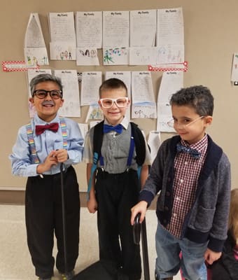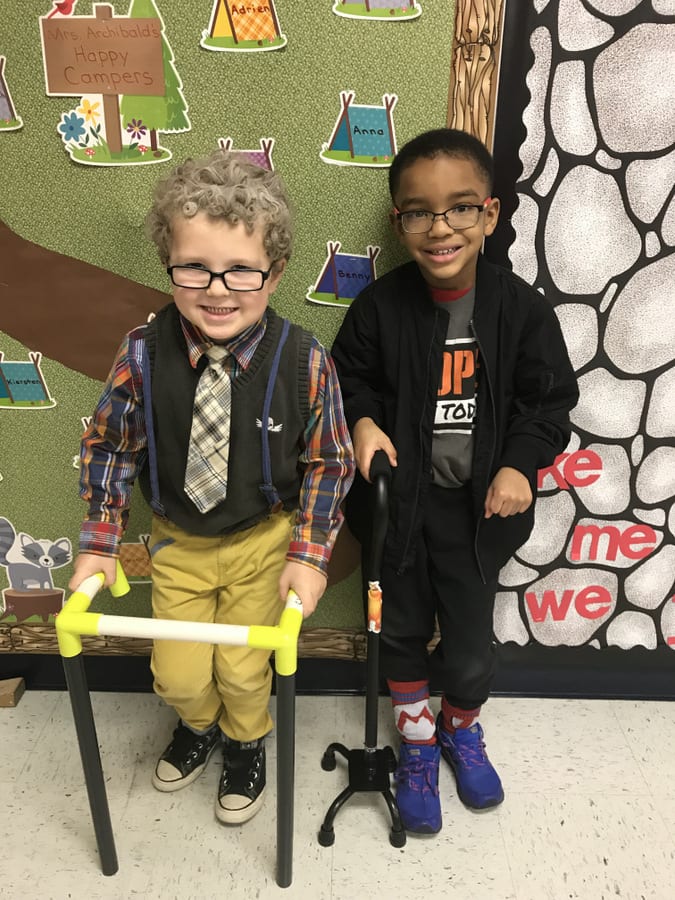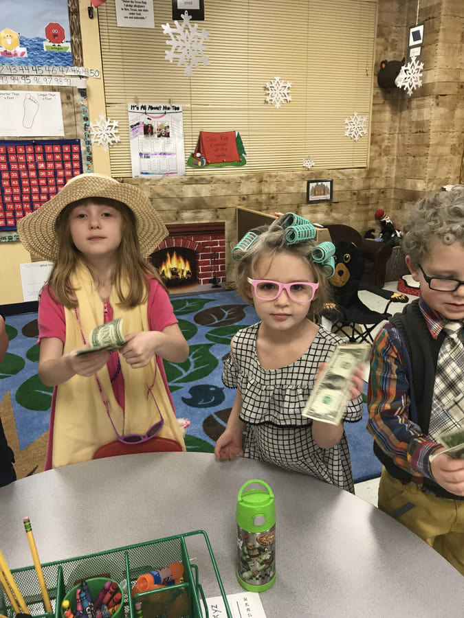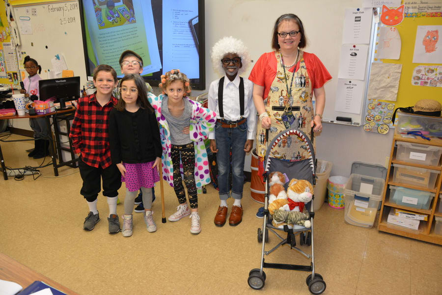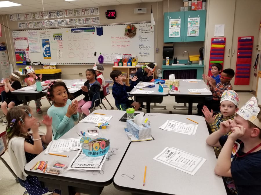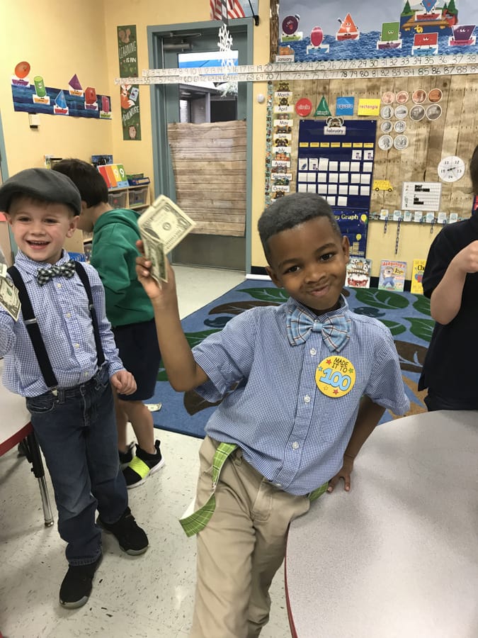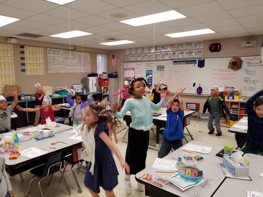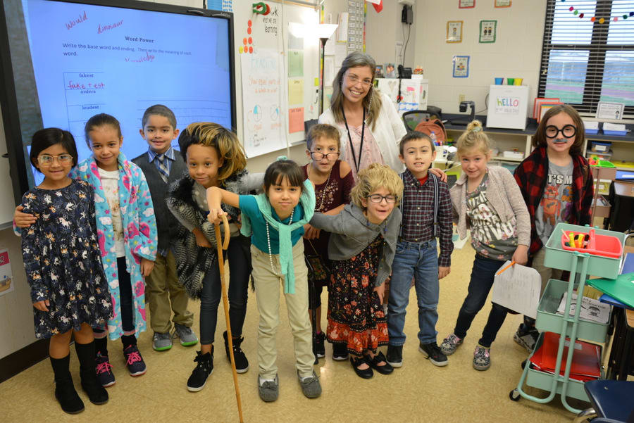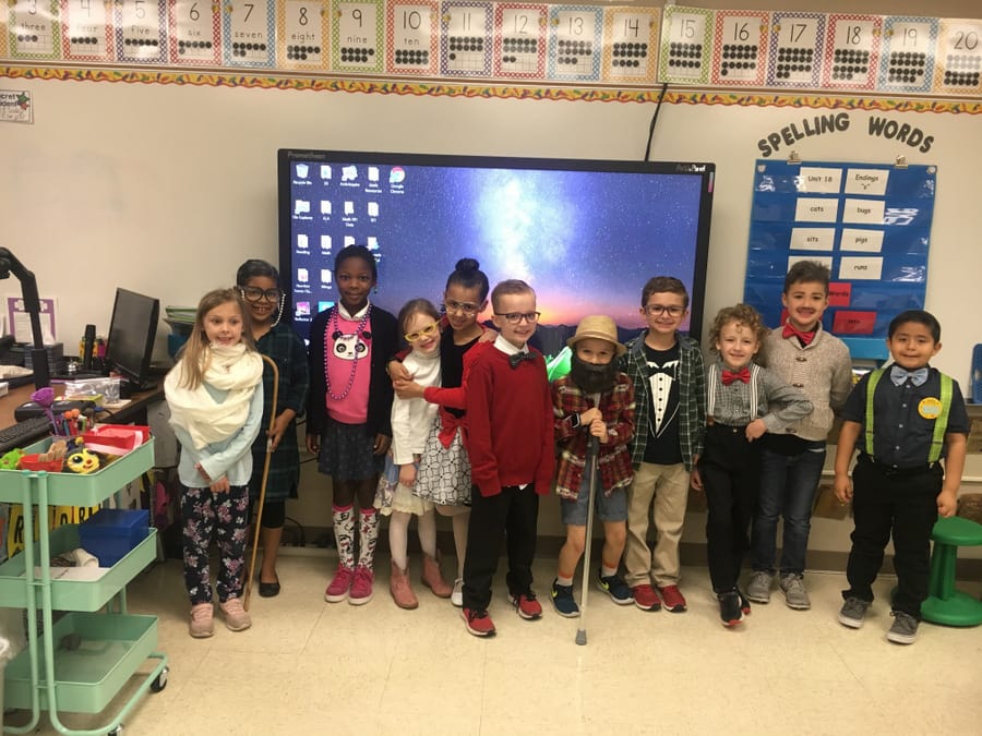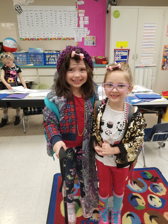 Celebrating 100th day of school! How many jumping jacks and how many times can we clap in 100 seconds in Mrs. Moulder's 1st grade class! Students in Mrs. Allen’s class dress up for the 100th Day of School which was Tuesday, February 5.