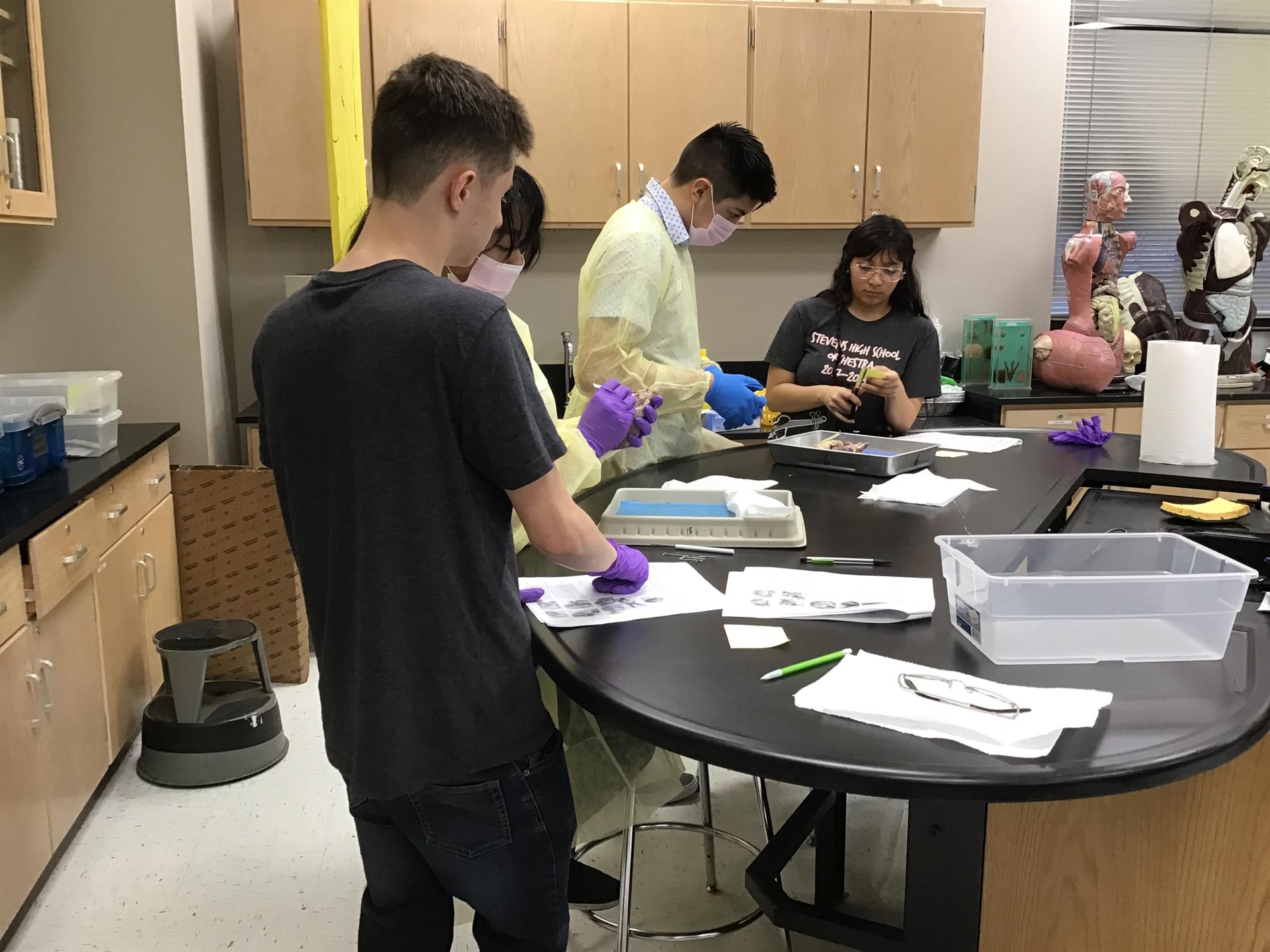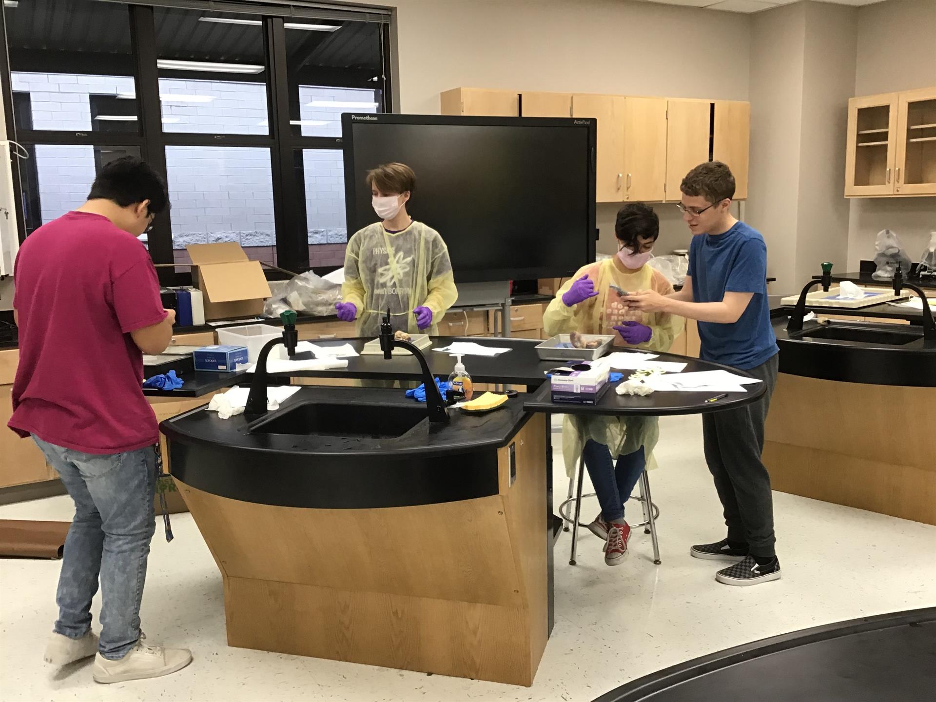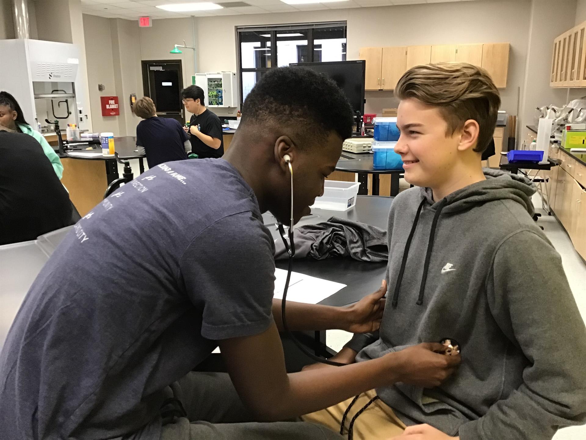 Photography by: Elouise Livingston Students in Ms. Davis’ anatomy class are currently learning about the cardiovascular system. This week students stepped into the “ER” lab and played roles as a heart surgeon and scrub nurse with a patient that needed removal of various heart defects. Students learned how to use medical PPE (personal protective equipment) and tools needed to complete the surgery This week- Students in anatomy class also learned how to take blood pressure and heart rates using stethoscopes and blood pressure cuffs.