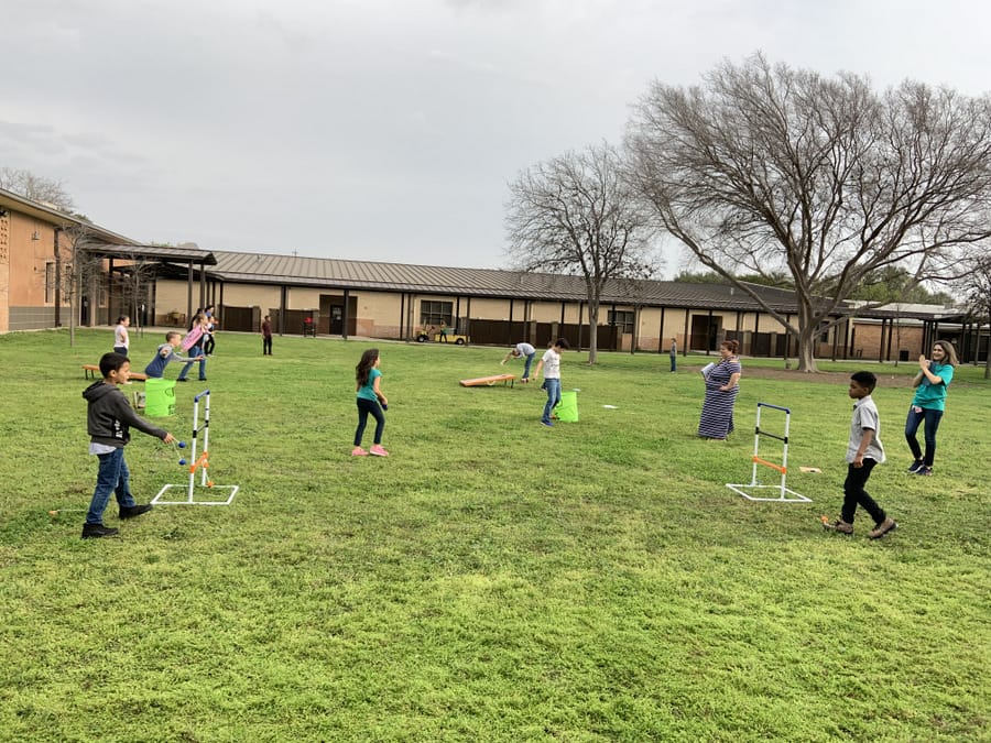 For the past two weeks In Mrs. Ryan's SFA class students have been reading Sports and Games You Might Not Know. This is a collection of various sports and games from around the world. Some of the interesting sports and games include polo, takraw, curling, parchisi, and backgammon. On Thursday, February 7th students put their reading skills to the test as they read about various outdoor games, discussed the game they read and filled out a graphic organizer with the most important information. The students then played: bocce, ladder toss, corn hole, bottle bash, and disc slam.