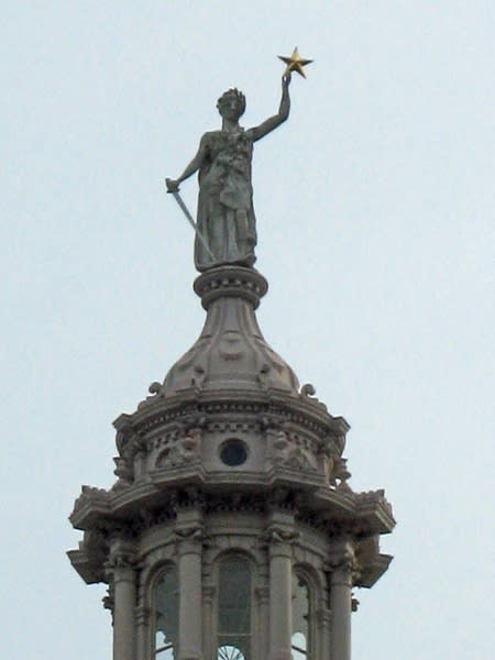 The Texas capital building opened in 1888. The Texas State Senate and House of Representatives make the laws there. The building is made of pink granite from a quarry in Texas. The Goddess of Liberty sits atop the capital dome. The life-size statues of Stephen F. Austin, known as the "Father of Texas" and Sam Houston are honored there. Austin is located in the Hill Country Region of Texas