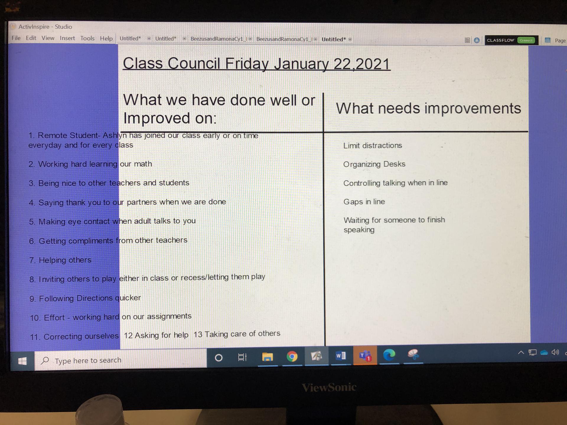 Ms. Perez’s Class Council Meeting on Friday 1/22. We have improved on Sooo much!