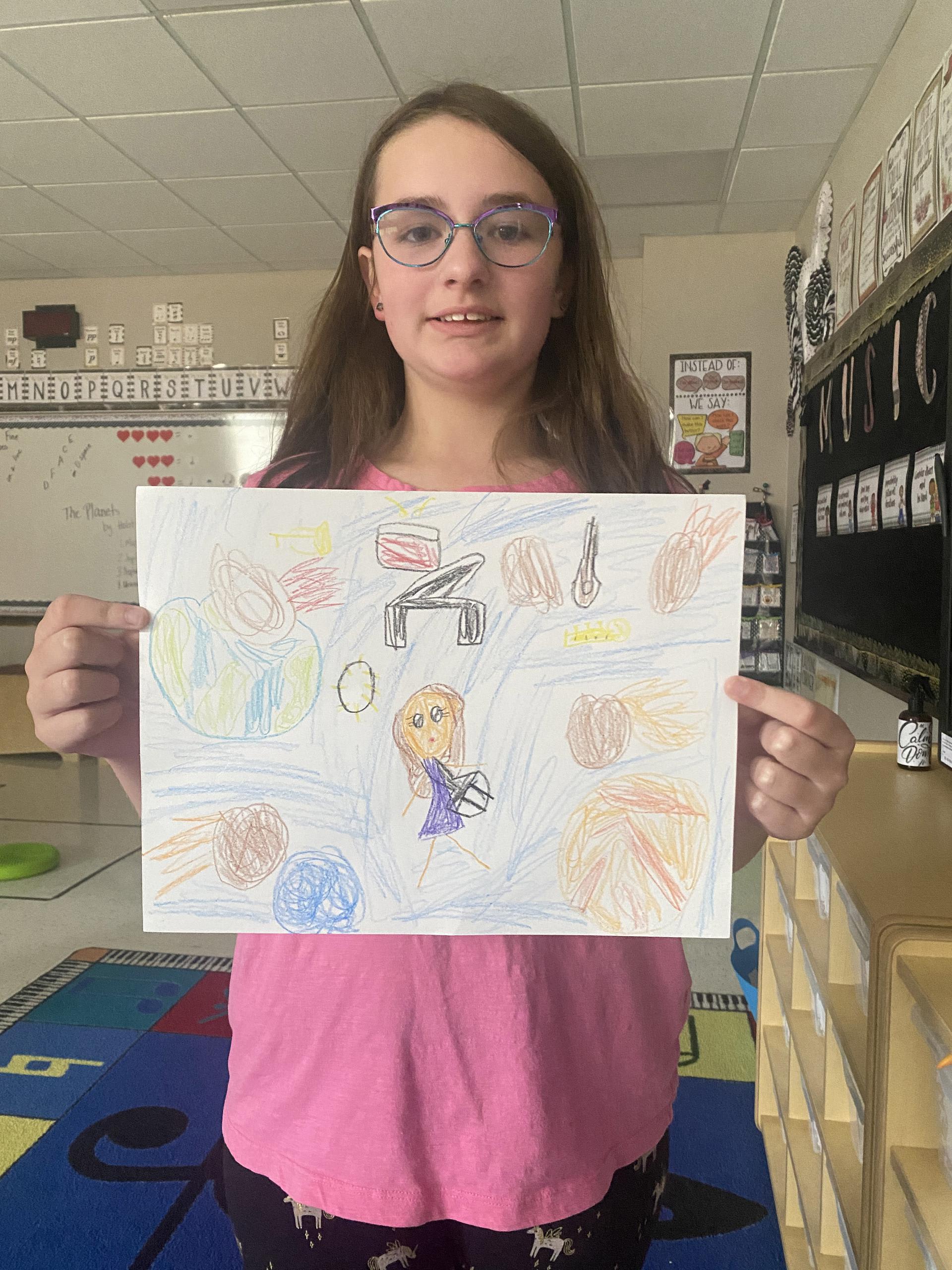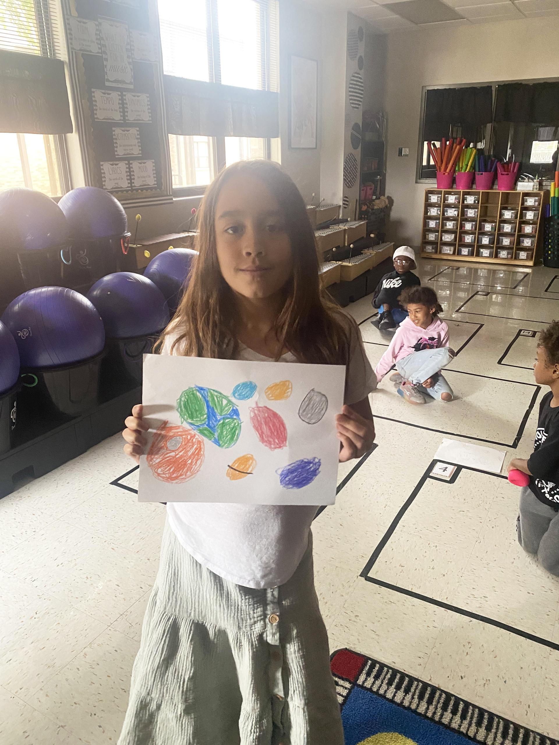 Students didn’t let the lack of electricity get in their way in music last Tuesday. Students listened to “The Planets” by Gustav Holst and created artwork inspired by the music. |