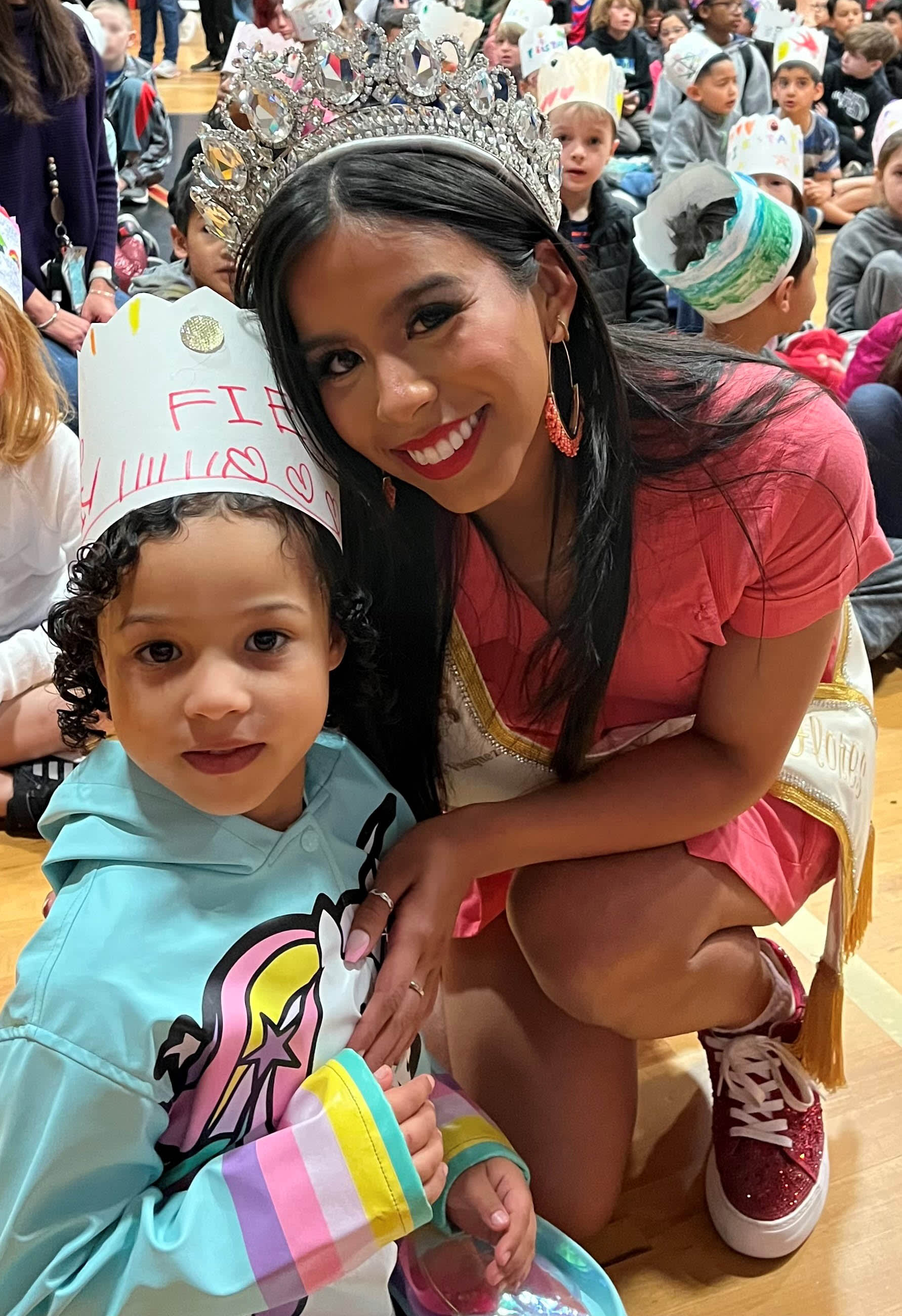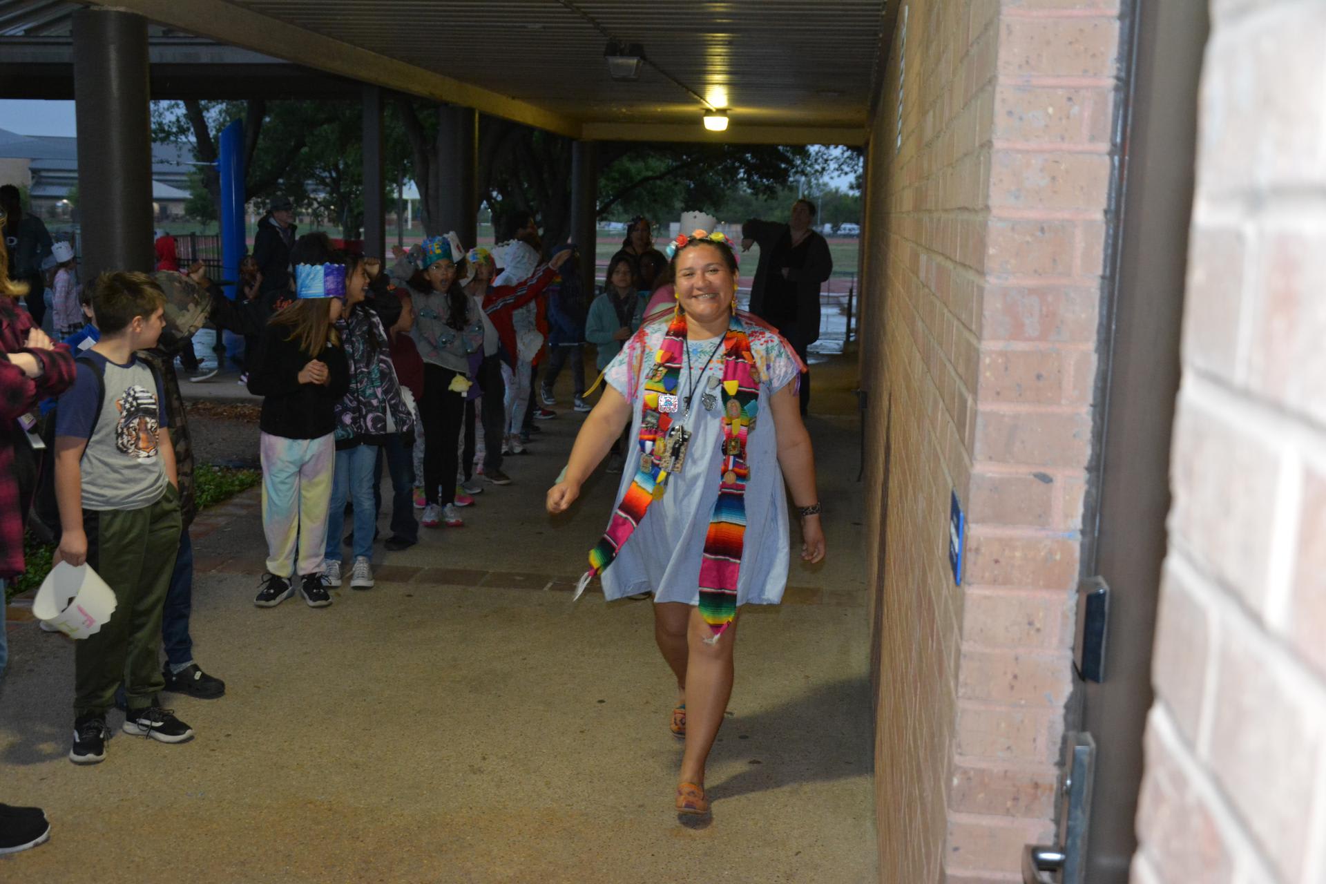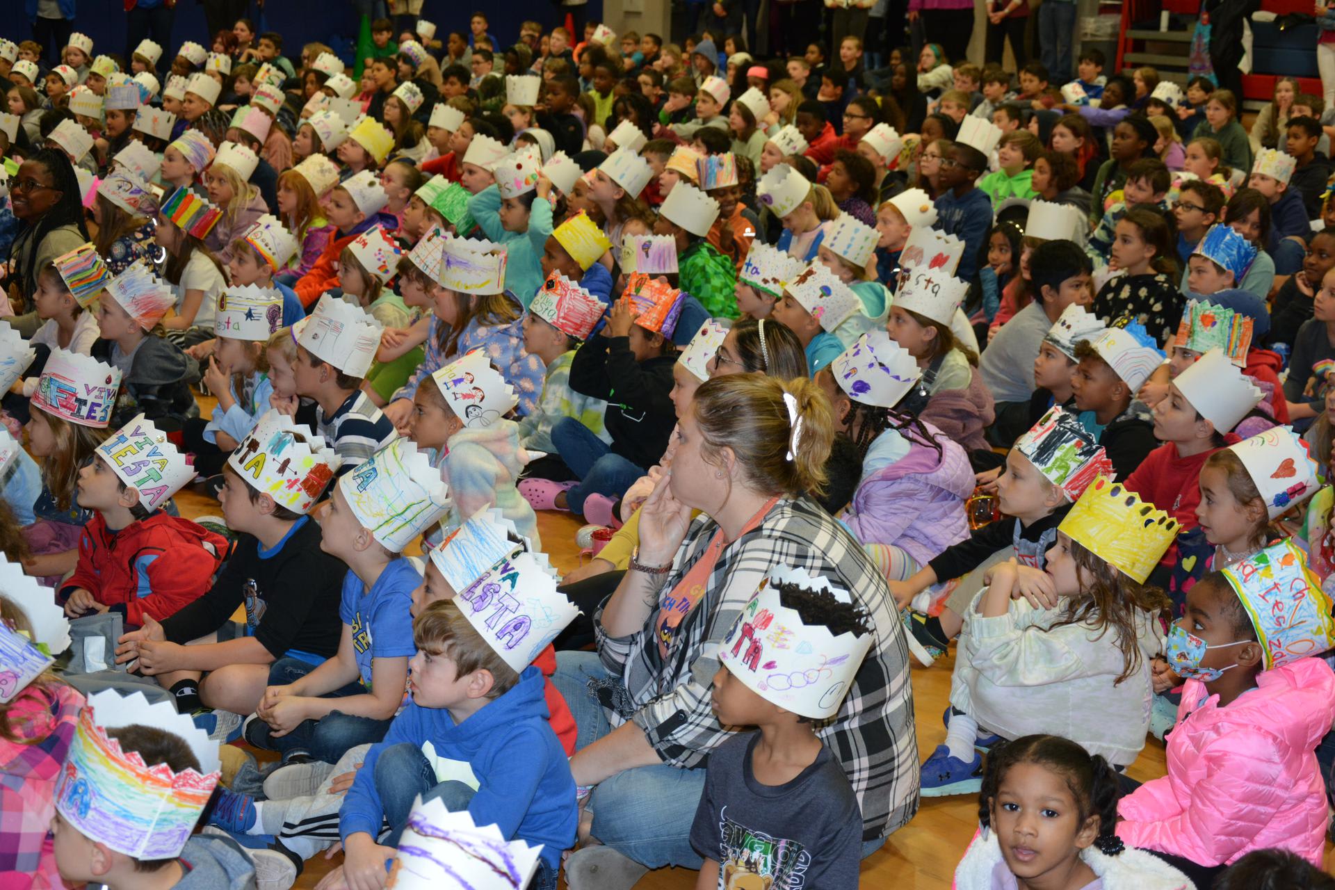 This morning King El Rey Feo and his entourage came to Lackland Elementary School to kick off Fiesta in San Antonio! Students and staff packed the gym wearing their own fiesta crowns and cheered on as the King and his court gave encouraging words and kindness to all! Some teachers and students were recognized for being outstanding this year! Special education teacher Mary Friday, 2nd grade teacher Mr. Patrick Button, librarian Mrs. Tiffany Walderman, elementary principal Mrs. Teresa Leija, top 5th grade boy