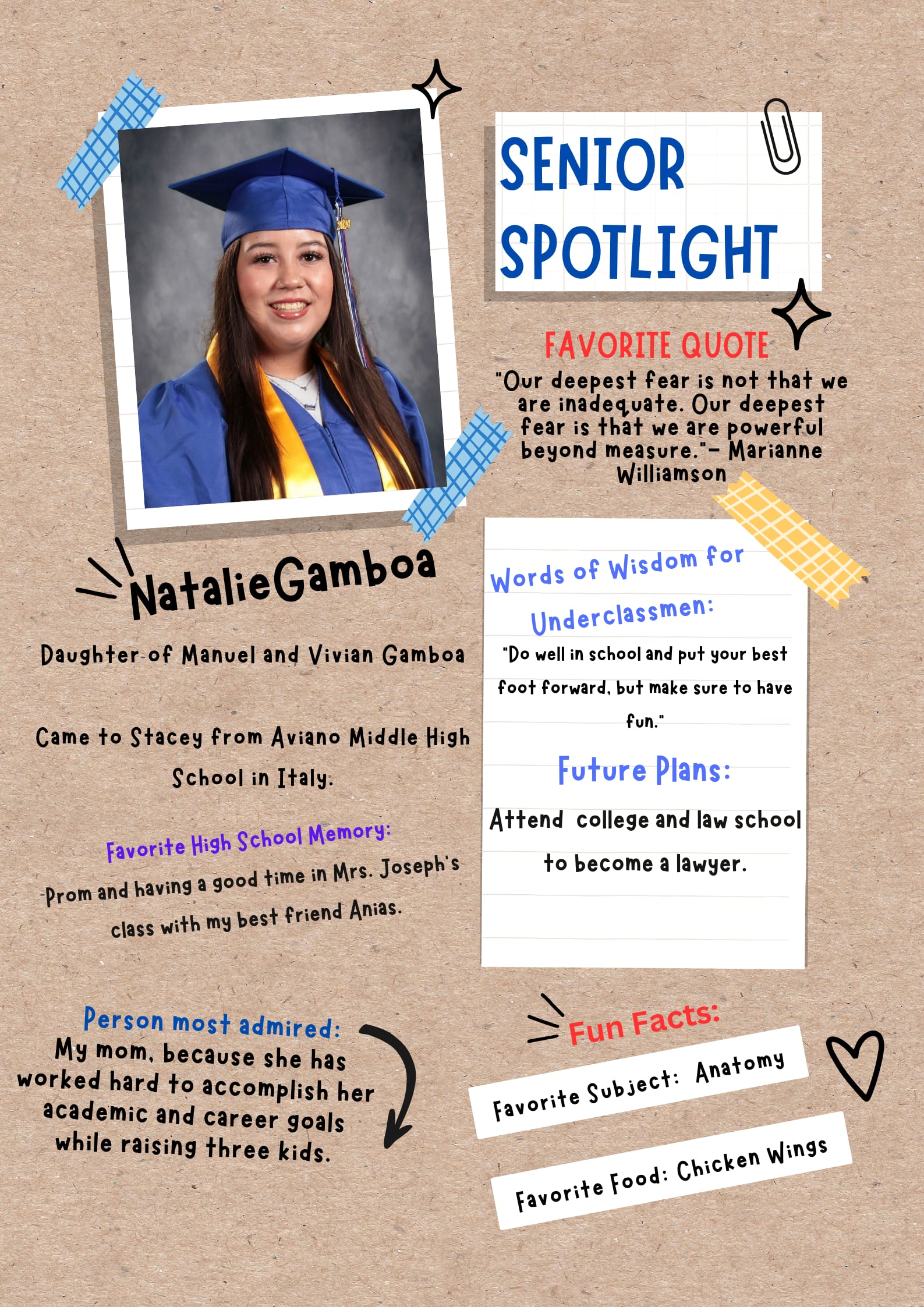 NHS selection of 10th, 11th and 12th graders is based on the following five (5) separate but equal areas of eligibility — character, citizenship, leadership, scholarship and service — as well as through grade-point average and teacher recommendations. 2023-24 Virginia Allred Stacey Senior High School Chapter Of National Honor Society Inductees |
