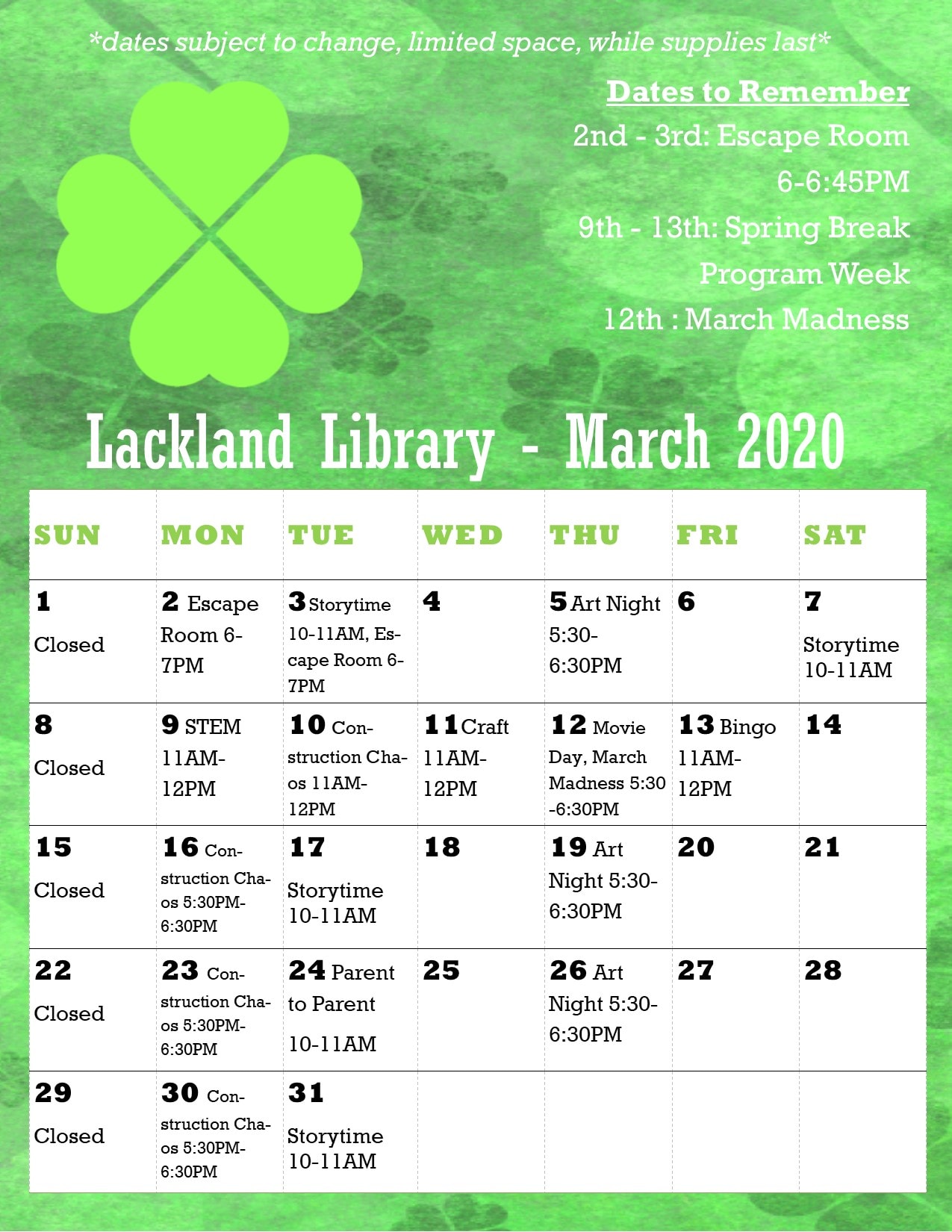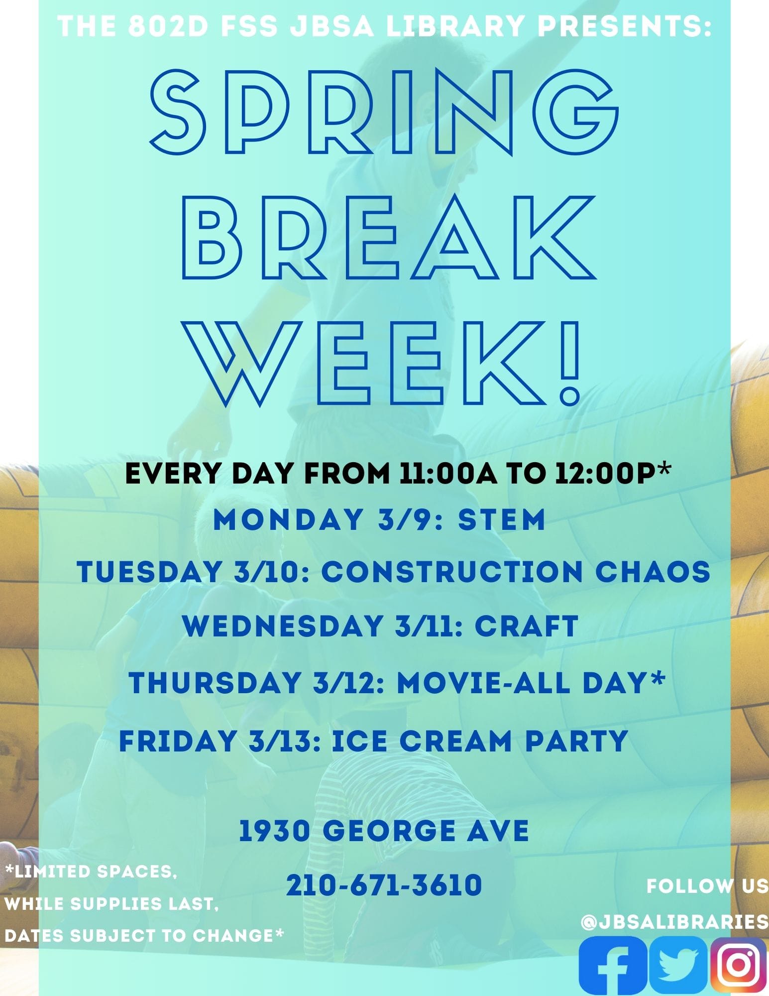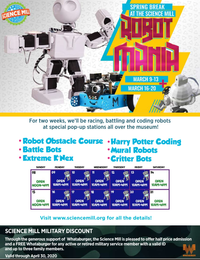 *March 8 - 10 AVID college road trip Houston *March 9 - 13 Spring Break * Friday March 13 Robotics FRC Competition Admin Alley Lackland Elementary Playground Open for Play!