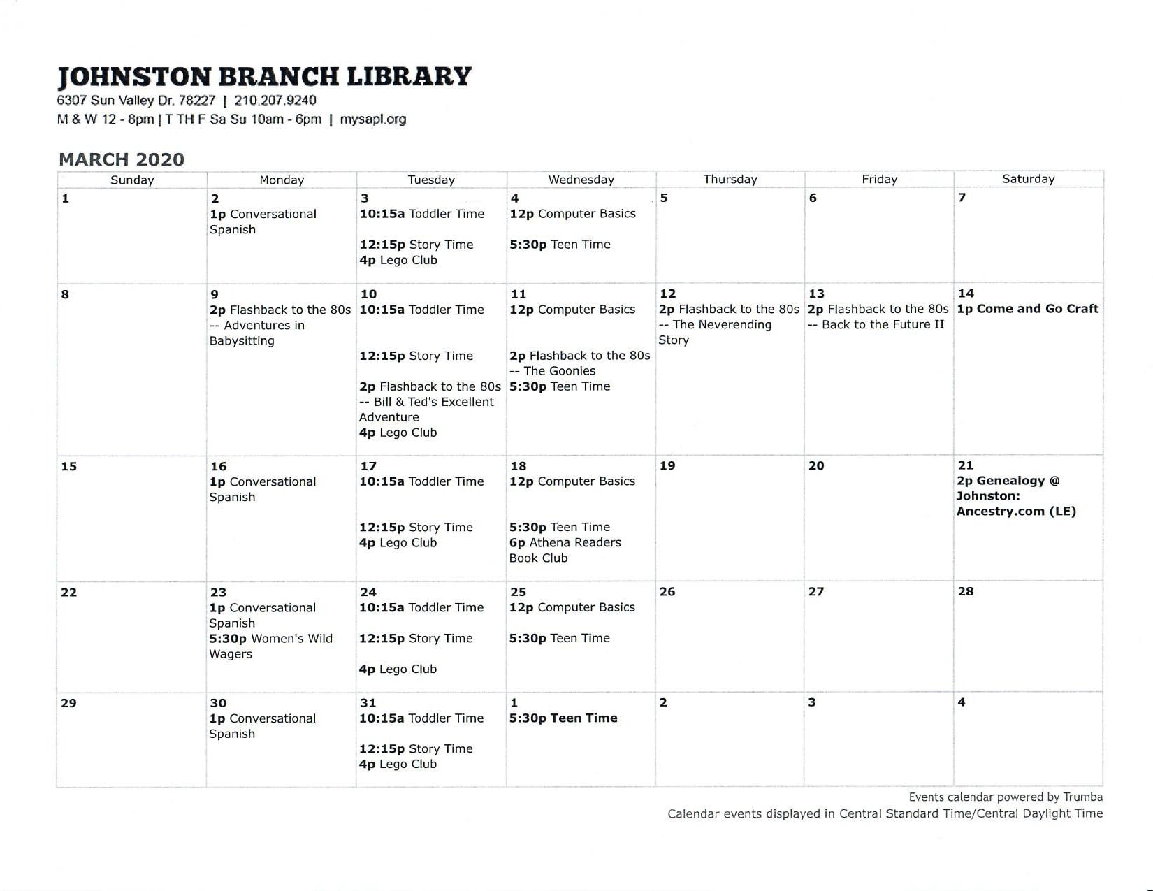 click these links for more information: ****** San Antonio Public Library’s Johnston Branch by the Medina Annex