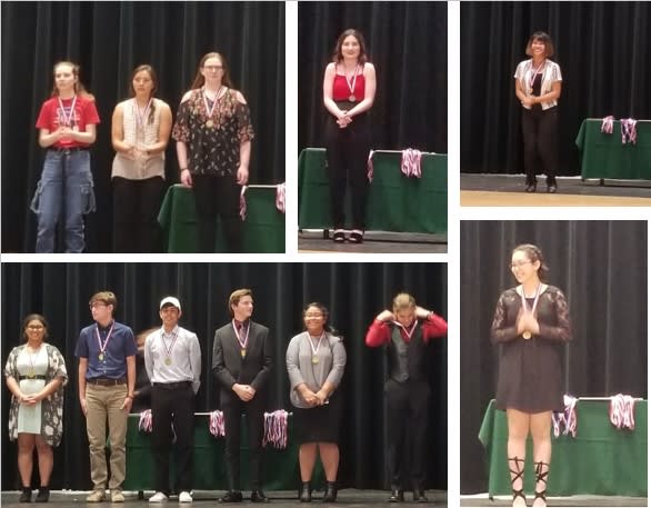 The boys' basketball season came to an end on Friday, February 28th after a tough loss to Hearne. The team played hard until the end and never gave up. We are going to miss this year’s seniors and we wish them well going forward. The team finished with an overall record of 24-10 and 10-2 in district play. They won two tournament championships along the way and had several players win awards. “Overall it was a great season and this team was one of my favorites to coach”. Coach Flores Yesterday the Stacey Drama Club competed in the UIL One Act Play district competition. Their production on “Antigone Now” advanced to bi-district competition. Theresa Born won All-Star Crew, Taylor Grider won Honorable Mention All Star Cast, Mark Dombrowski and Aaliyah Kirton won All Star Cast and Hayley Sablan and Valeria Zamora Martinez won Best Performer awards. Congratulations to the entire cast and crew.