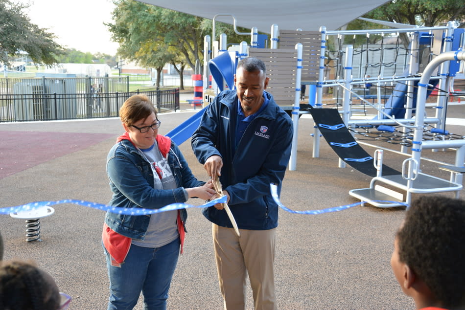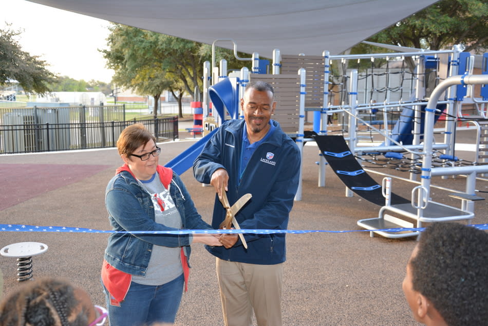 A ribbon cutting ceremony was held today for the new Lackland Elementary playground. More than a year ago, our teachers and administration expressed the need for our older students to have somewhere to play and release their energy. The two other playgrounds Lackland Elementary has were not built for our older students, so we agreed and decided to build a playground for them. The ribbon cutting was well attended and included students, parents and staff. A special thanks to board trustee MSgt Brian Case who also attended the brief ceremony. Students were anxious and super excited about their new playground. After the ribbon cutting, students swarmed the playground and ran around unable to contain their excitement. One student proclaimed, “This is the best day of my life!” Around the District Camp Gladiator comes to Lackland! Amazing teamwork and LOADS of fun! We hope we can get tons of Lackland members to come take advantage of the many opportunities being offered to get a great full body workout! Great for ALL fitness levels! Come join us!