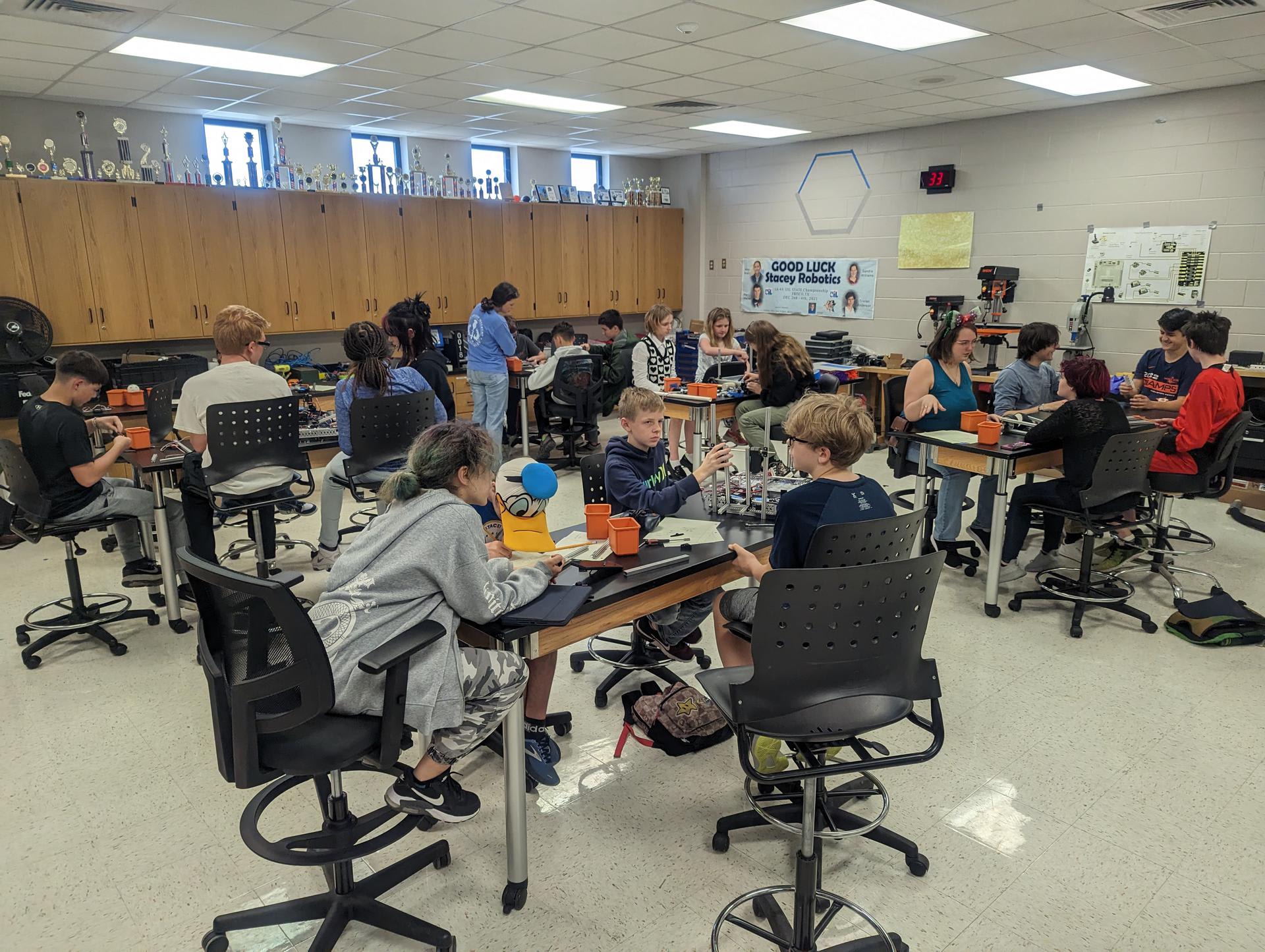 The robotics crash course is an after-school activity that gives students the opportunity to learn about robots and code. It helps ease students into the spirit of FRC, FTC, and BEST. It’s a quick and easy learning course to help kids get an overall grasp of robotics before upcoming robotics events. The course is led by one of our seniors (Sandra Williams) with the help of previous robotics participants who now work as mentors. The crash course teaches you everything from the basics of building to the complexities of coding. The coding regiment is run by another one of our seniors (Perry Weller). The course is led by Mr. Kinsey on Tuesday and Thursday after school from 3:20 to 4:20.