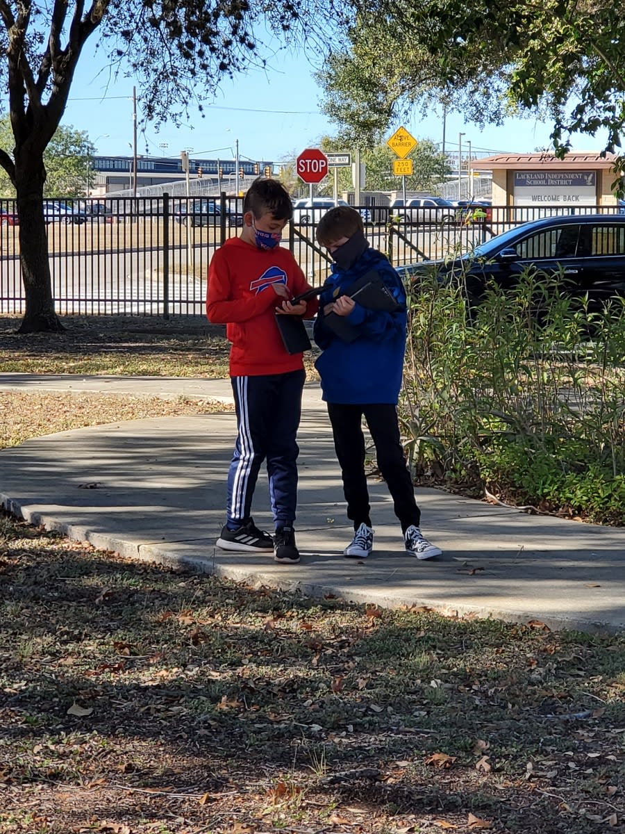 Elementary Happenings Mrs. Martino's class taking pictures of slow changes to the earth's surface for their science scavenger hunt.