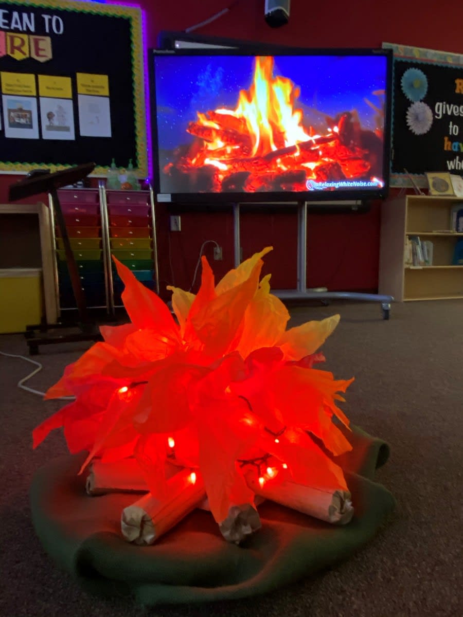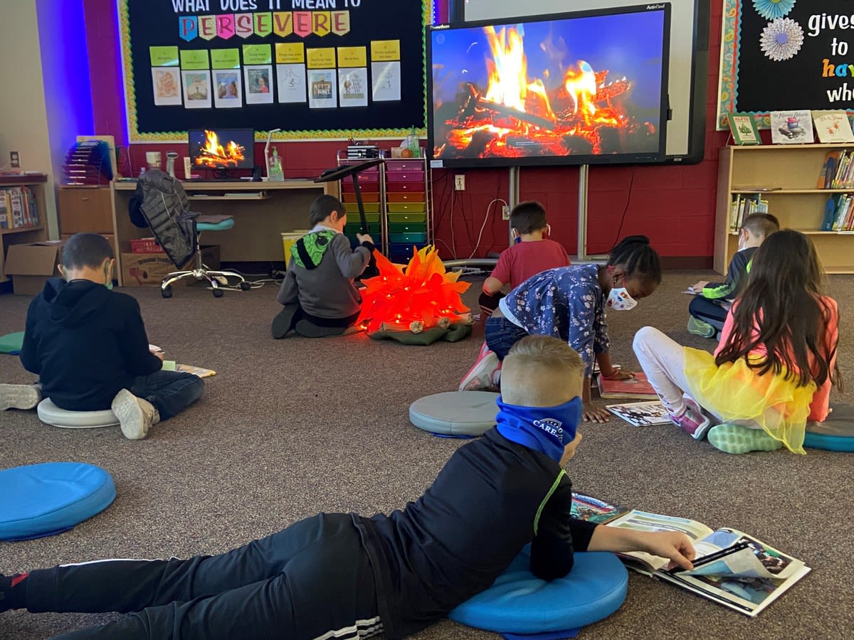 Elementary Happenings Mrs. Lawrence’s class enjoying campfire stories in the library.