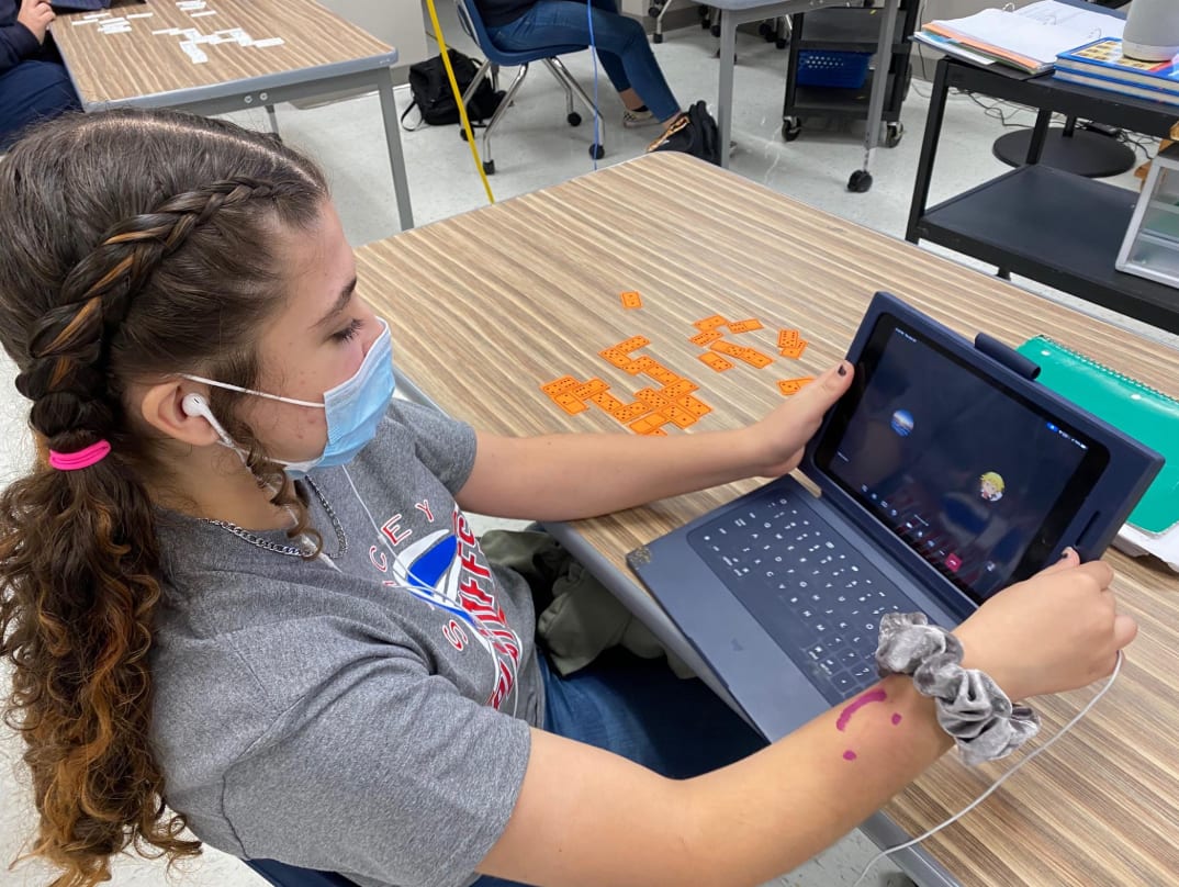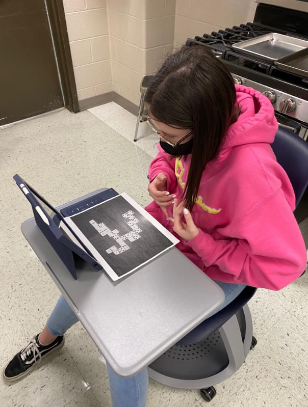 Principles of Human Services students just finished up their unit on. communication. Virtual learners are explaining the domino set up in picture provided by Mrs. Duron. Face 2 face learners are listening to replicate the set up. Students enjoyed the challenging activity, especially if they got it 100% correct. The family and community service class started a district wide project to write kind notes and send a little love to elders by writing letter. The whole school district was involved. They were able to get letters from kindergarten all the way up to seniors! 150 letters were collected and a few students requested a pen pal. The community service class would like to thank everyone who helped brighten the days of the Blue Skies residents.