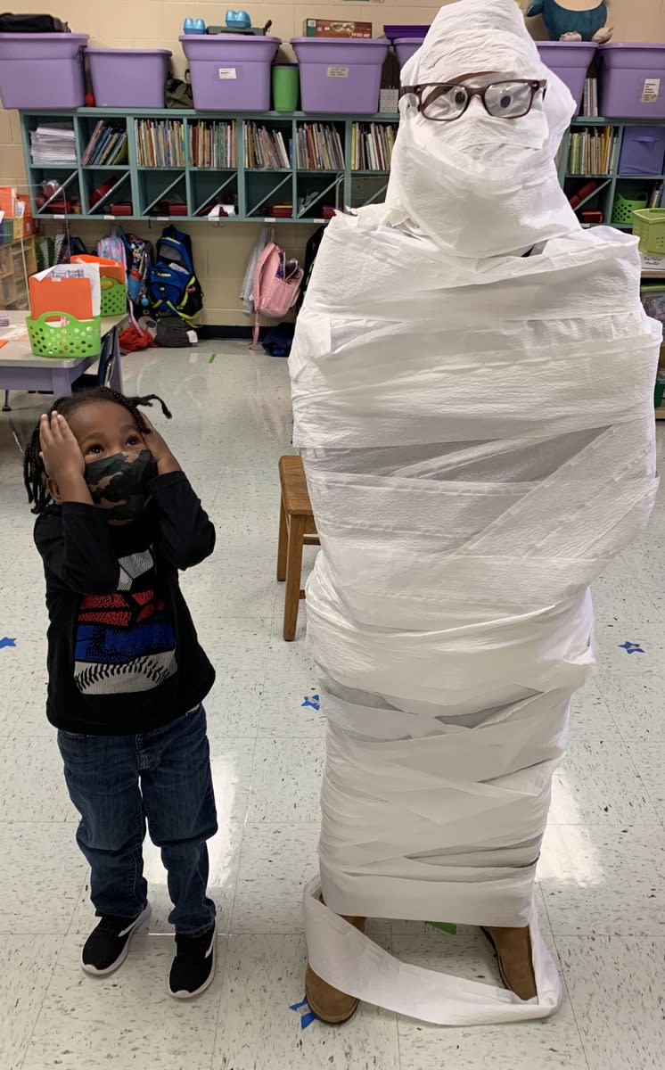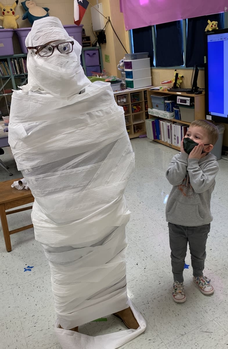 Mrs. Silvin’s class practiced counting today. They used an unusual model. I wonder who their Mummy was today?