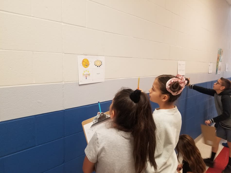 Mrs. Crawford’s class testing their Earth, Sun, and Moon skills with a gallery walk. Which picture doesn’t belong?