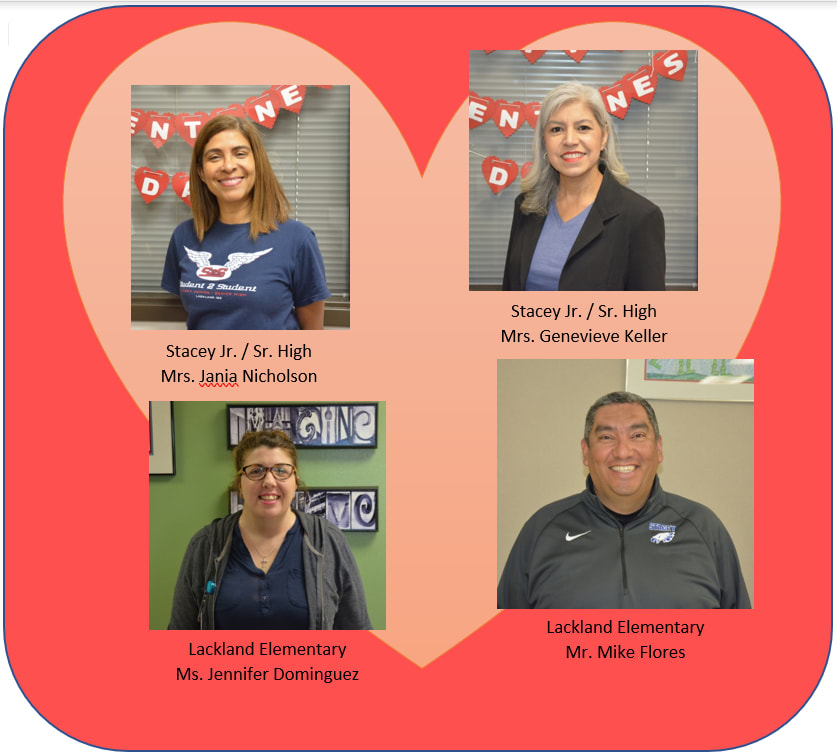 This week is set aside for the national recognition of counselors. At the heart of Lackland ISD’s system of social-emotional support are our four counselors. Lackland Elementary School counselors are Mr. Flores (PK-2) and Ms. Dominguez (3rd-5th). Ms. Nicholson serves as the counselor for middle school students and Mrs. Medellin-Keller is the counselor for our high school students. Beyond the classroom teacher, this team provides the foundation for social-emotional support for our students. Lackland ISD is also fortunate to have the additional support of our Social-Emotional Support Coordinator and Interventionist, Mrs. Castillo, Our social-emotional support assistant, Ms. Santoyo, and four Military Family Life Counselors. We appreciate the coordinated efforts of this team to ensure that student needs are met academically and along the social-emotional continuum. Thank you for being at the heart of the outstanding services we provide to our military-connected students.