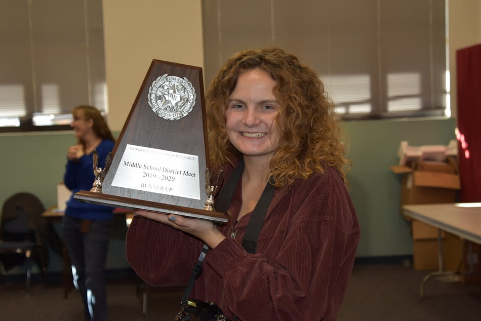 Earning Division 2 ratings on band solos were Allison Flores, Miranda Morales, Moira O'Malley, Maria Orencia and Perry Weller. Earning Division 1 ratings were Caitlyn Baney, Abby Conger, Anias Culberson, Conner O'Malley and Siarra Smith. Advancing to the state contest are Conner O'Malley on his solo and the flute choir composed of Maria Orencia, Sarah Thompson, Abigail Morales, Theresa Born, Siarra Smith, Kamryn Thompson, Perry Weller and Caitlyn Baney.