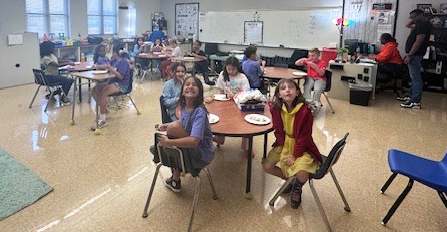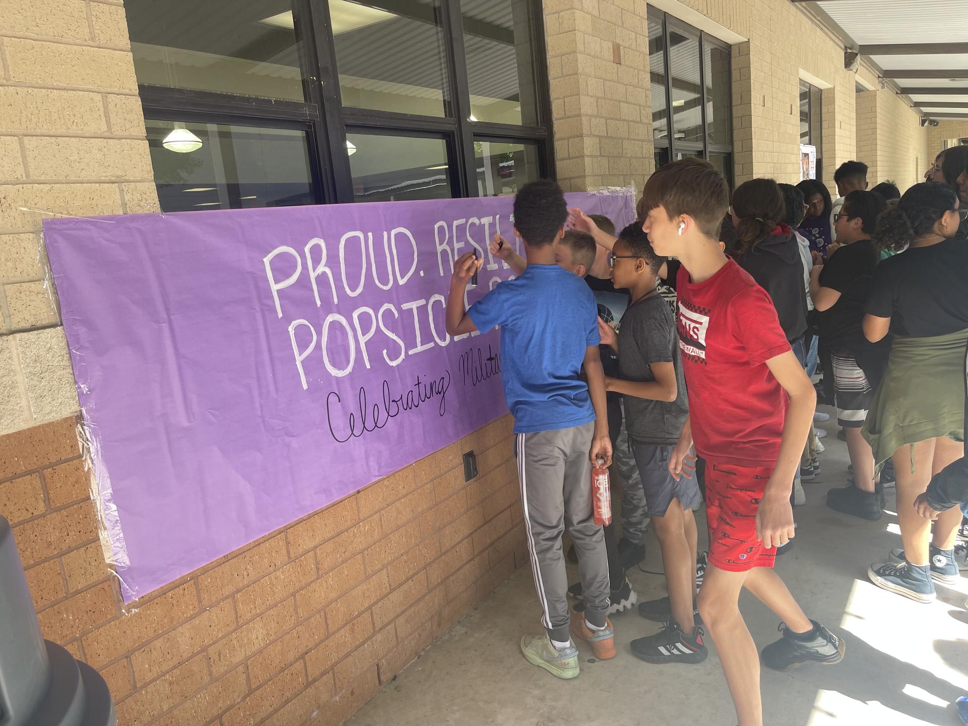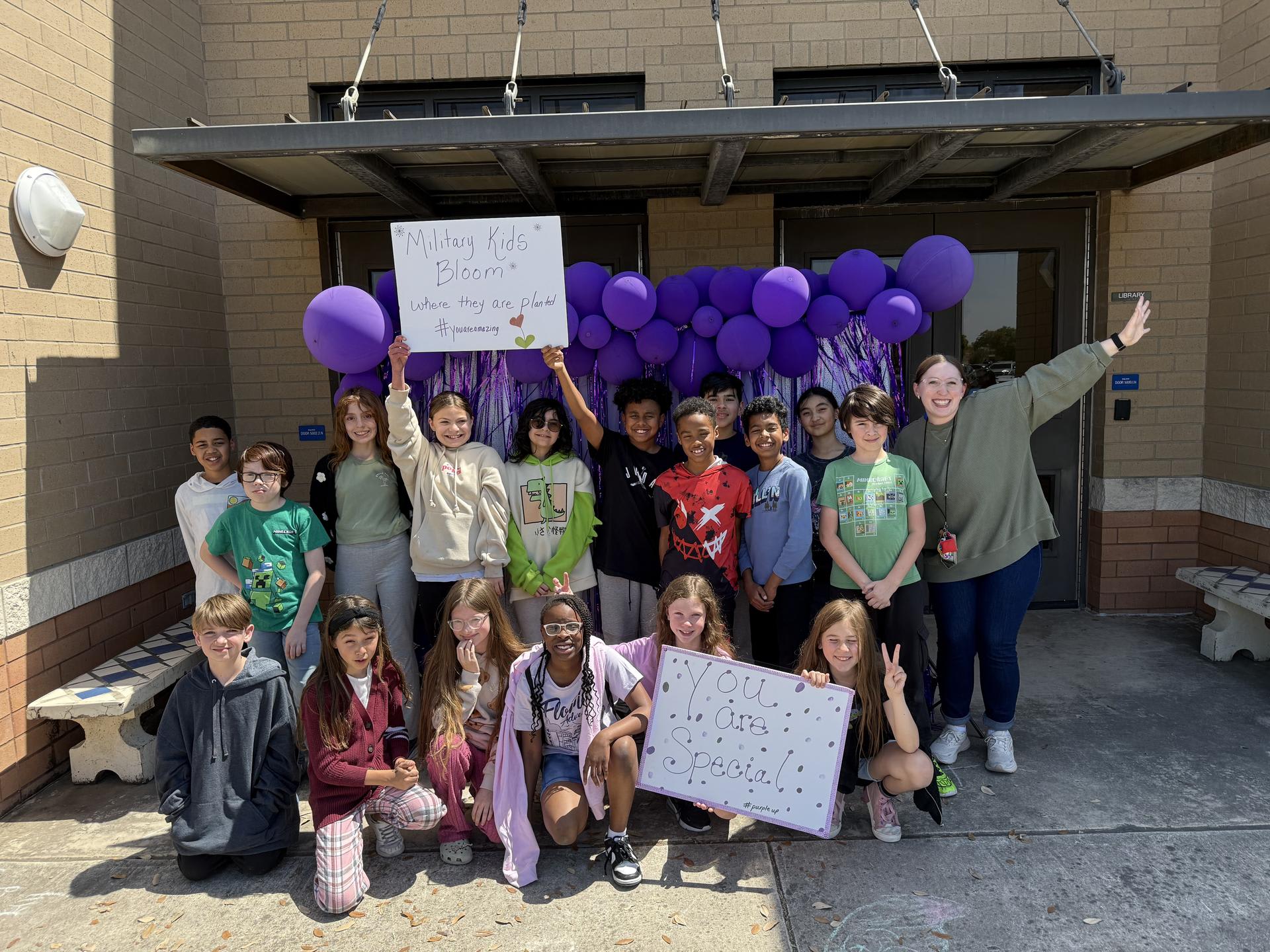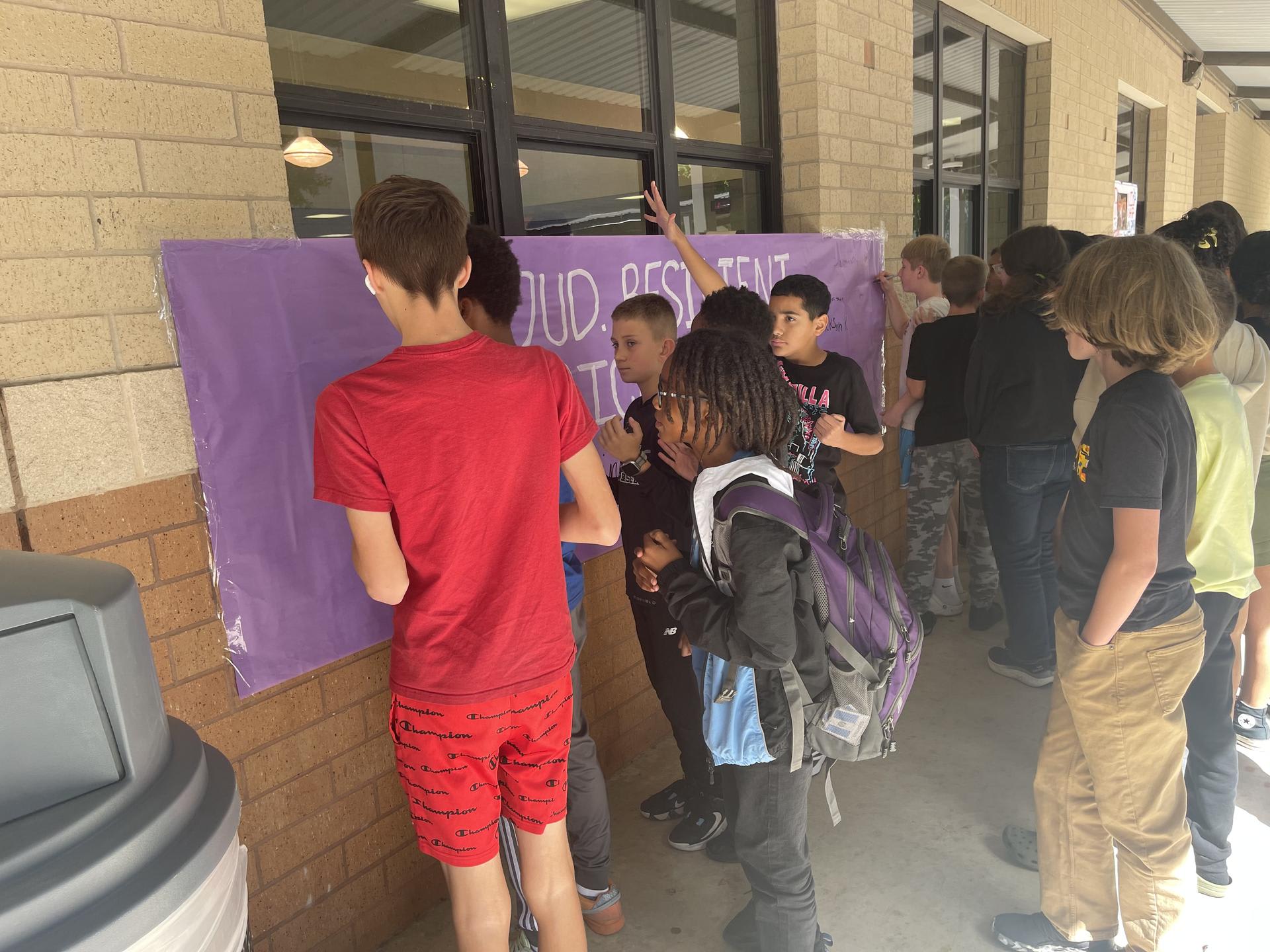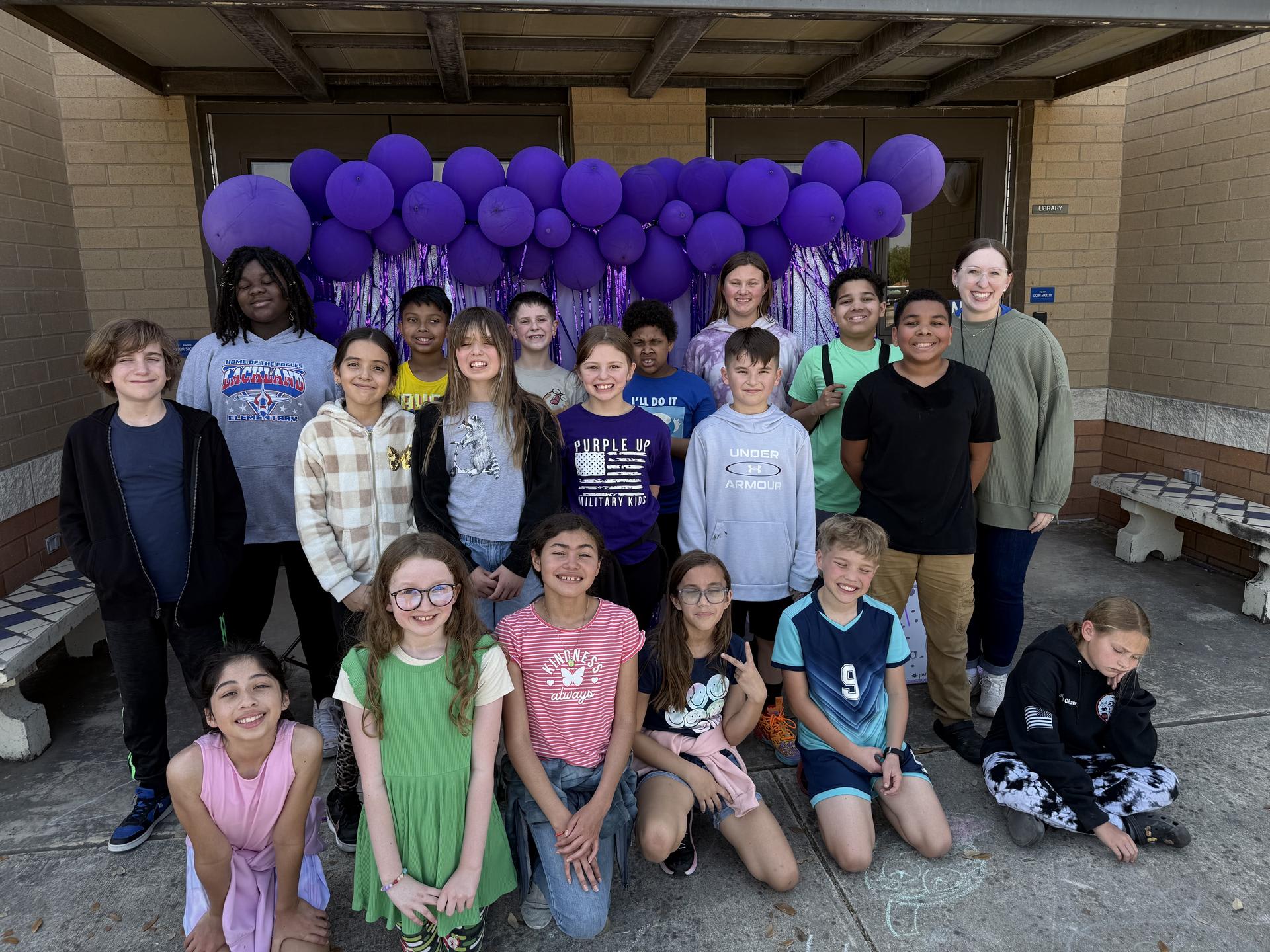 Purple Up with Ms. Eeds and Mrs. Smallwood's classes!! Thank you PTSO for the super cute back drop!! |