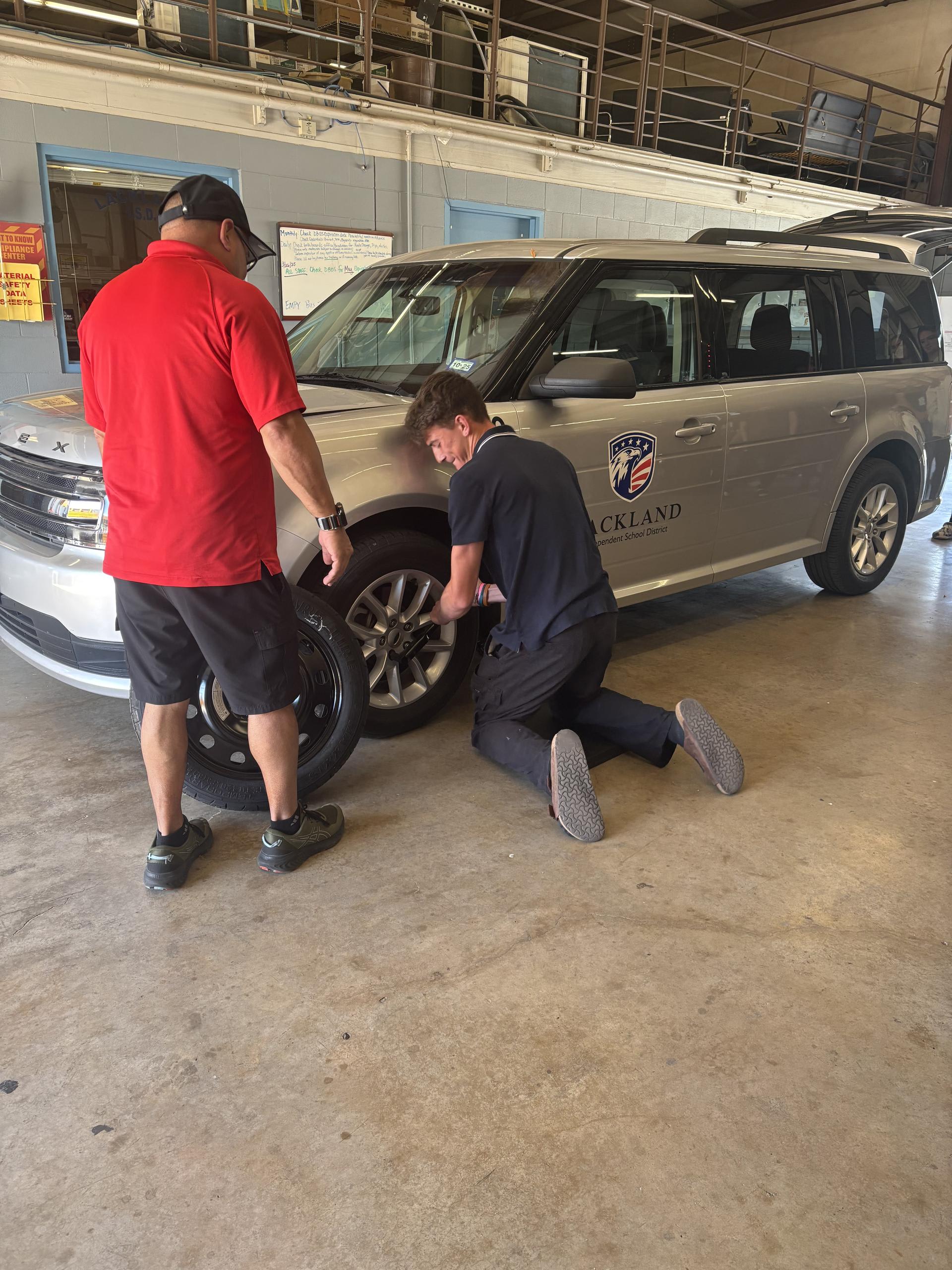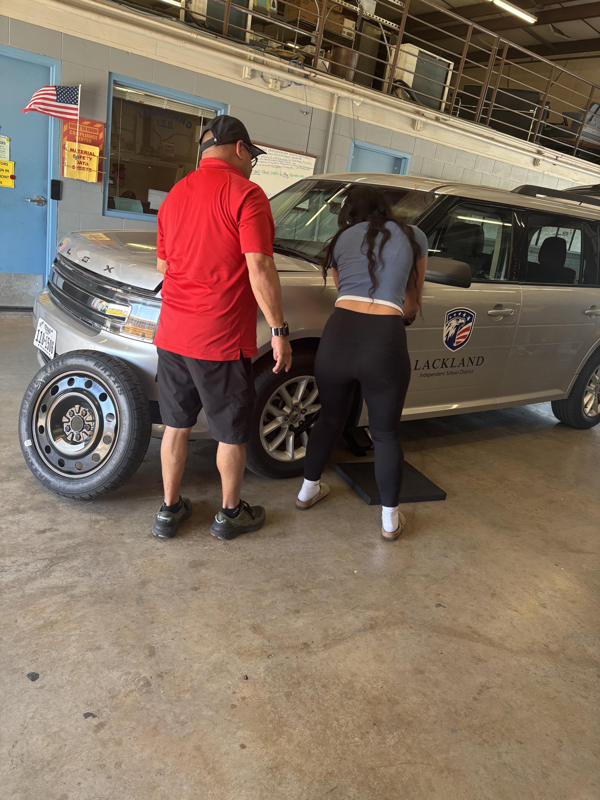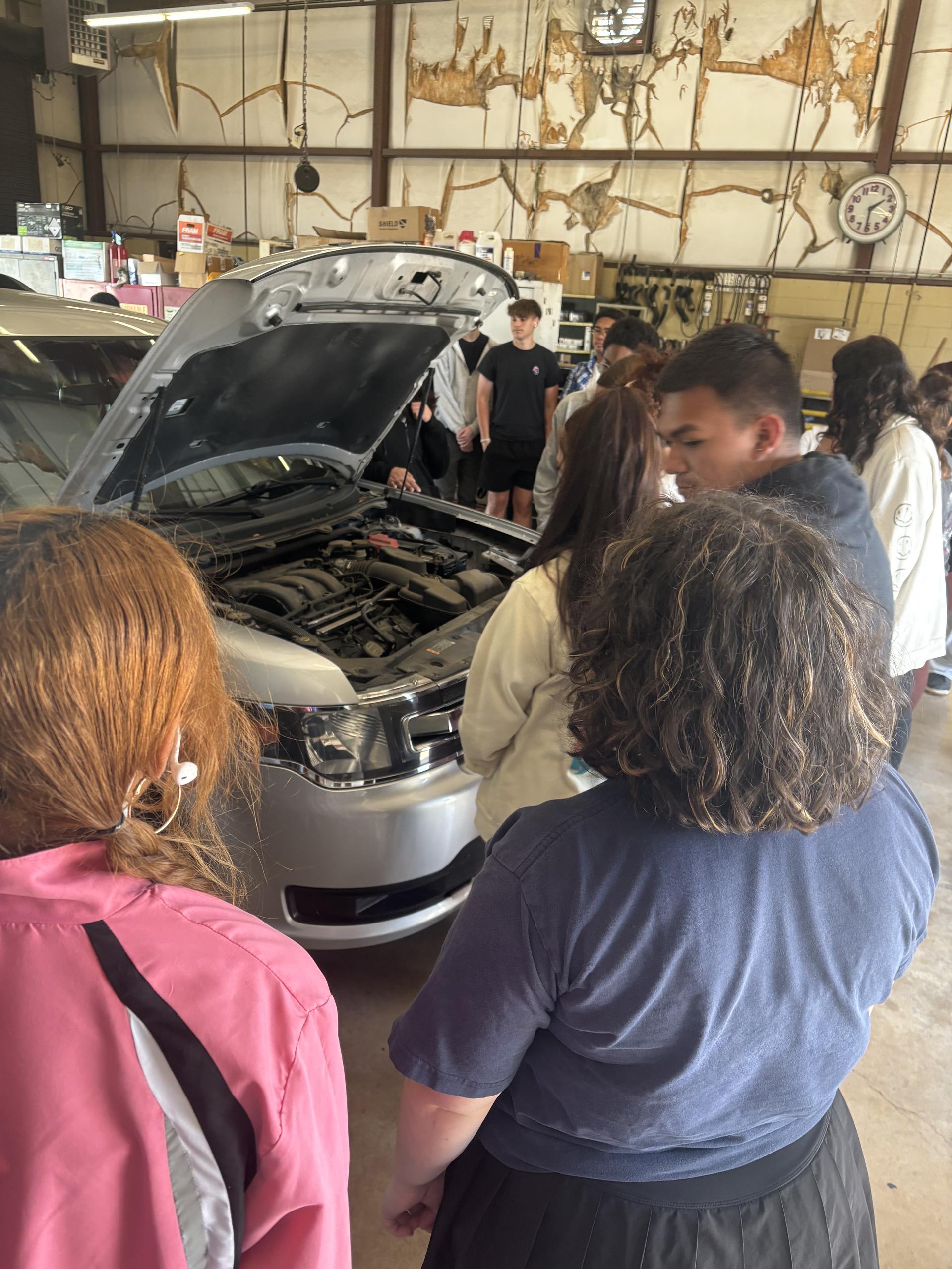 Seniors during senior seminar learn how to maintain a car. |