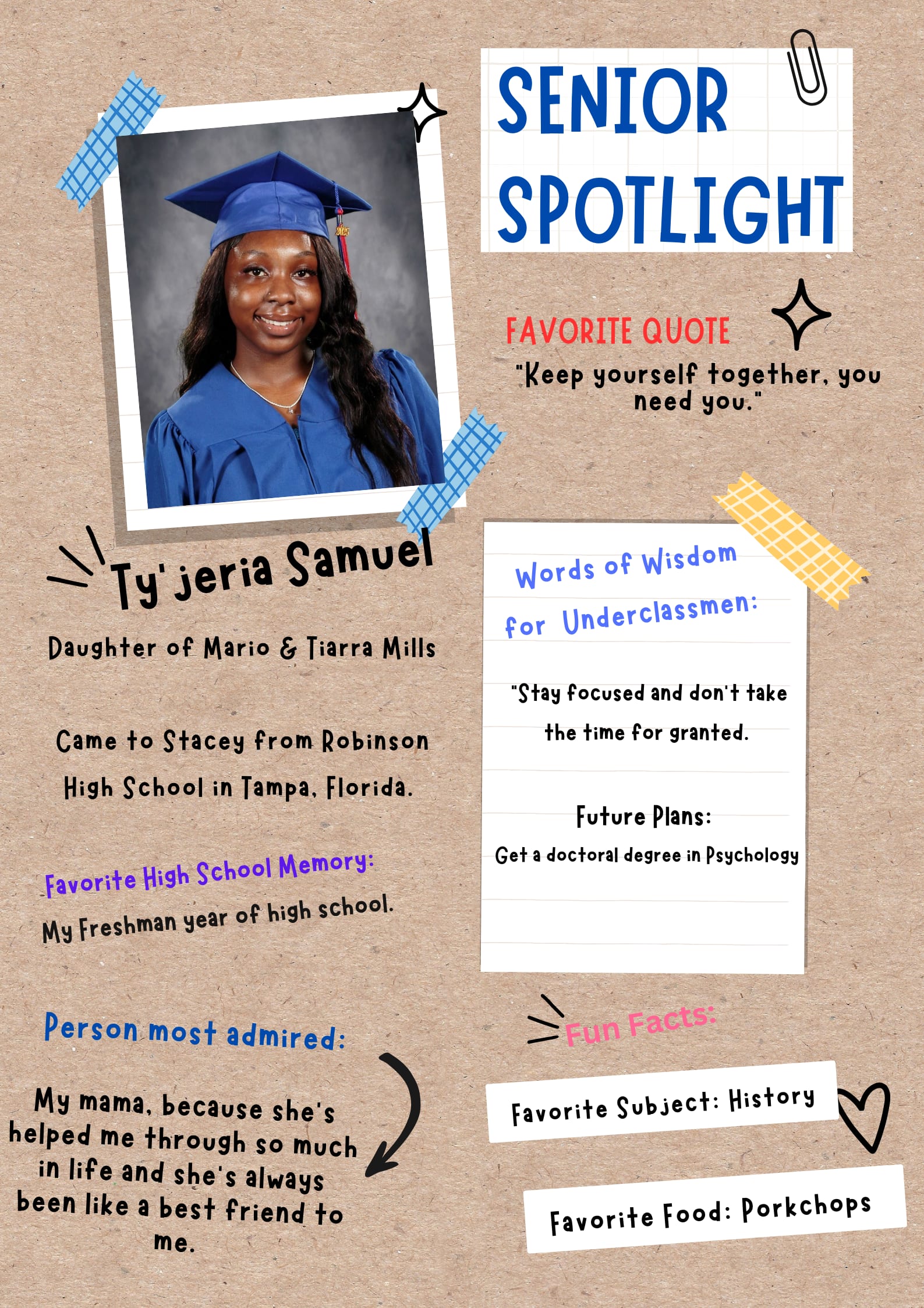 I was blessed to attend Stacey Jr./Sr. High School, where I learned the importance of accountability and taking ownership of my success. I was fortunate to have incredible mentors like Mr. Fernandez, Mr. Richard, Coach Smith, Coach Flores, and Mr. C. who played a key role in my growth and helped me transition smoothly into college and, eventually, my career. As a military brat in a small school environment, I developed a strong sense of adaptability, which inspired me to pursue higher education and, more importantly, give back to my community.