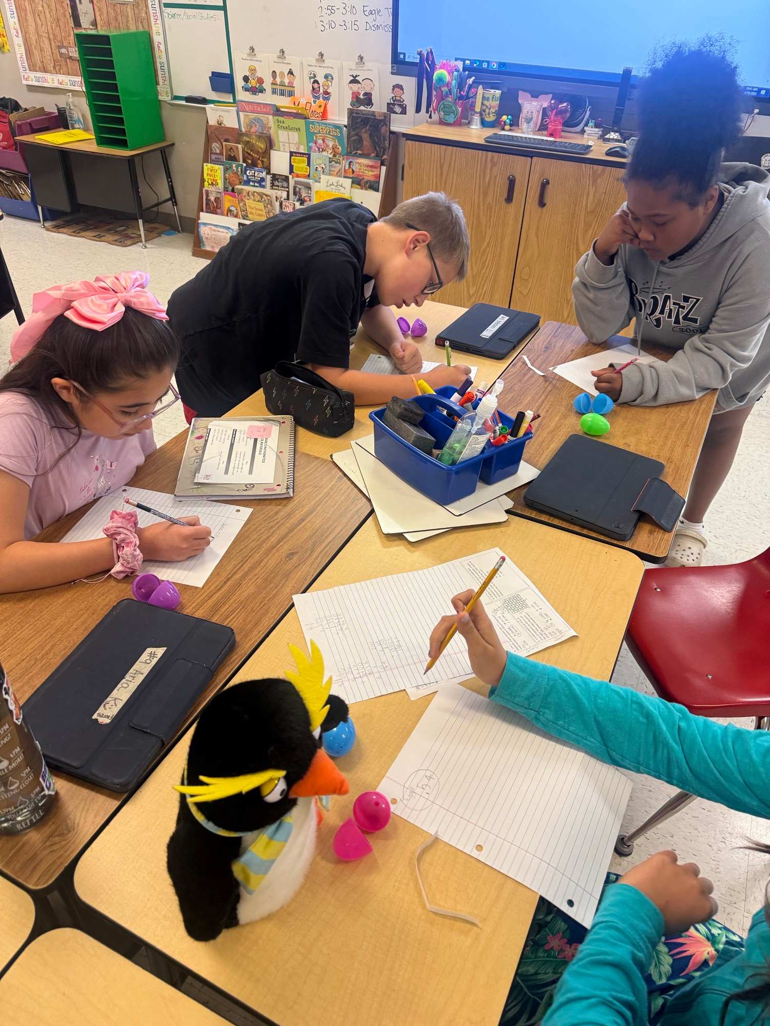 Kids were excited to find Easter eggs filled with STAAR review math questions! They were working hard and having fun! |
