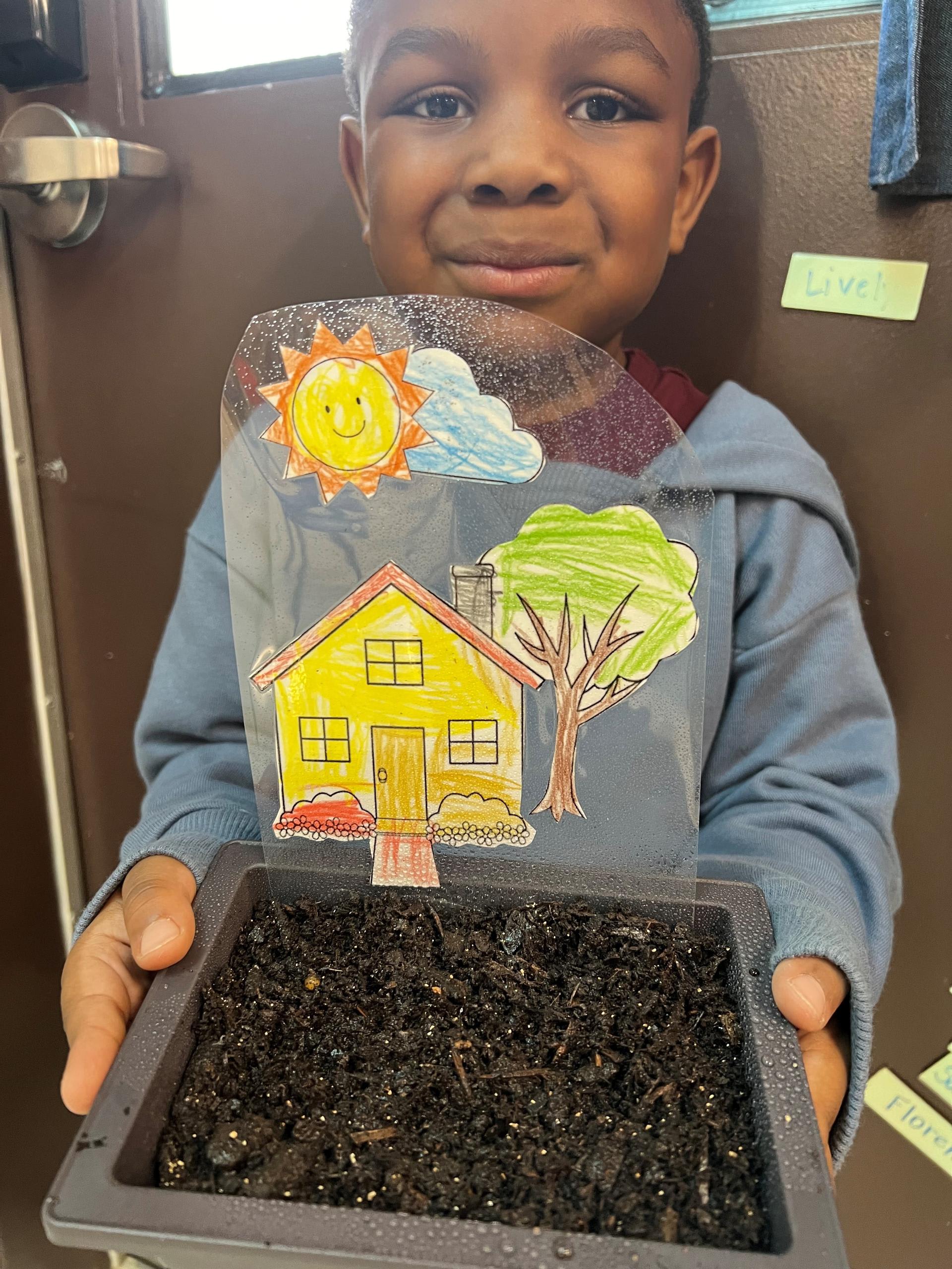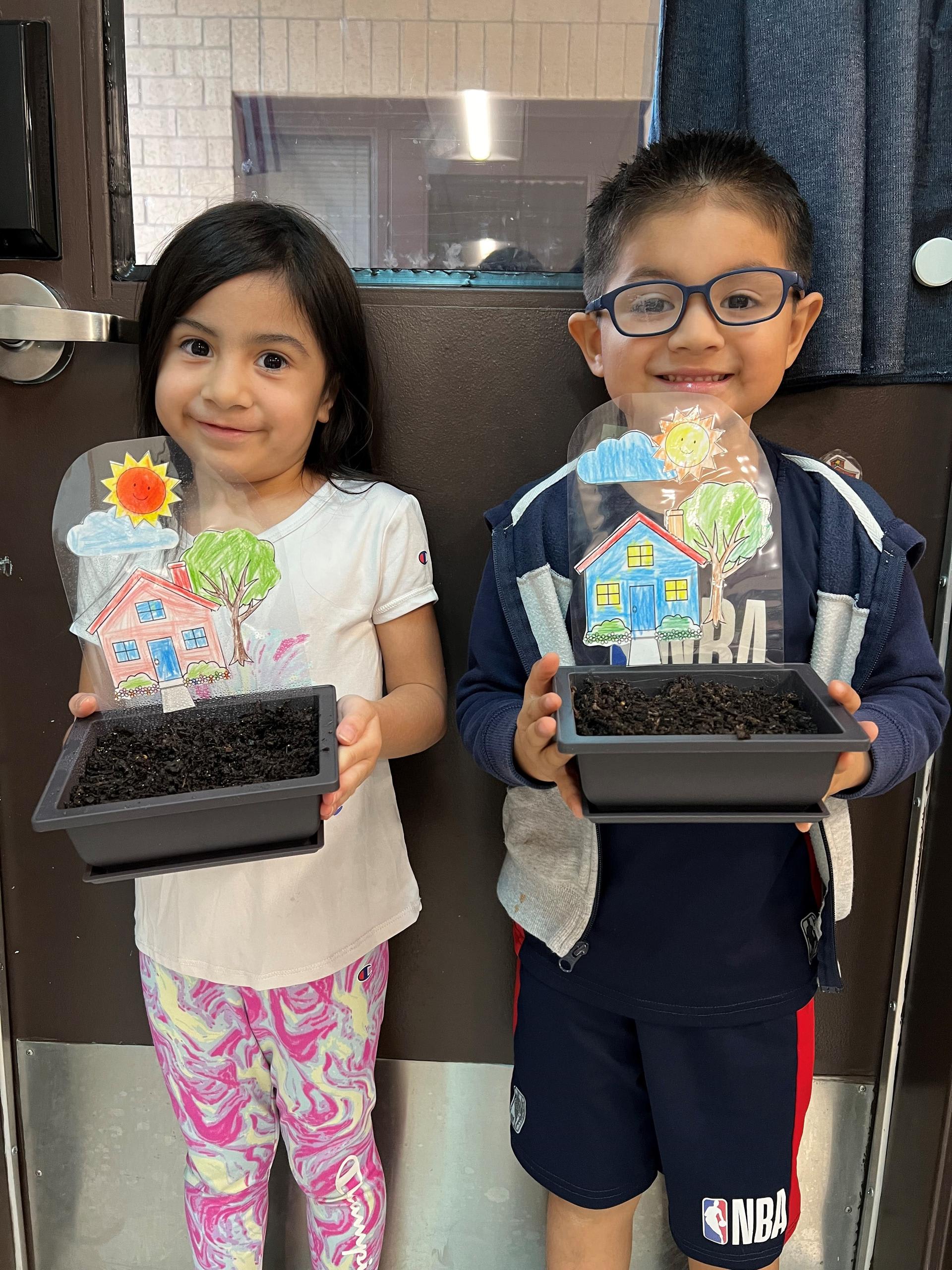 Mrs. Silvin’s class are planting flowers and grass for their front yards. |