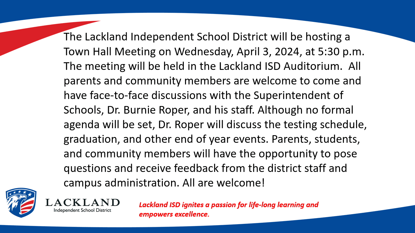 *Wednesday April 3 LISD Town Hall 5:30 LISD Auditorium *Thursday April 4