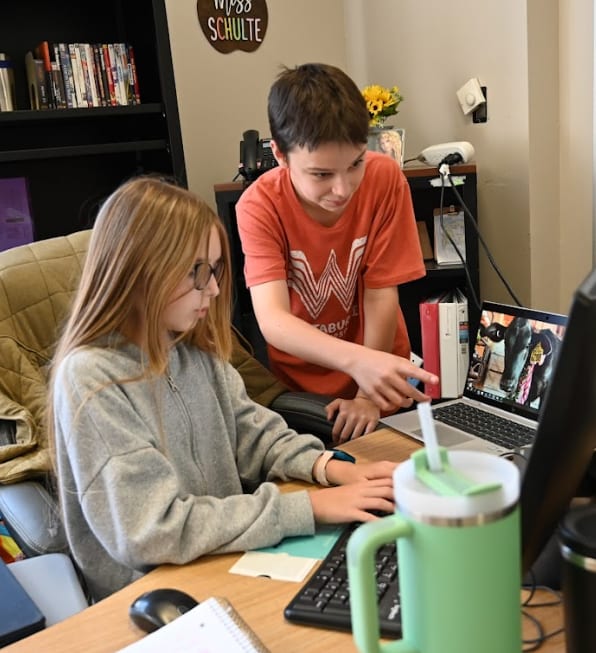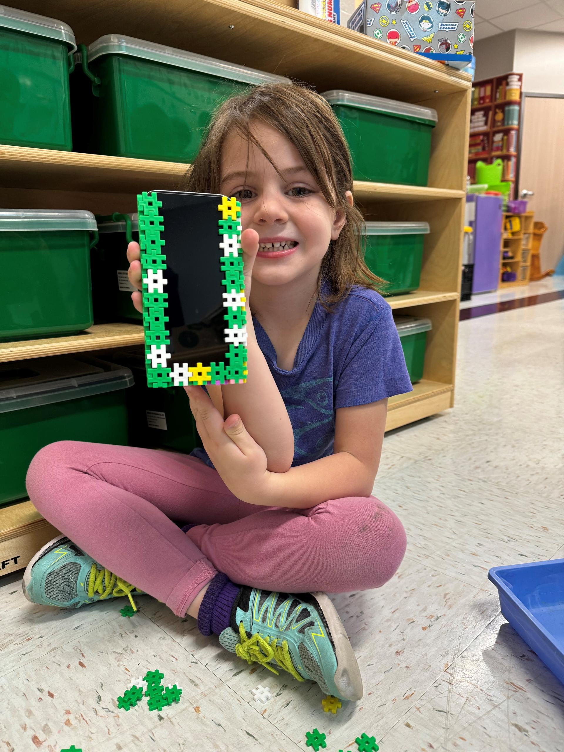 Florence is using her ingenuity to create a new cell phone case for Mrs. Silvin’s iPhone. |